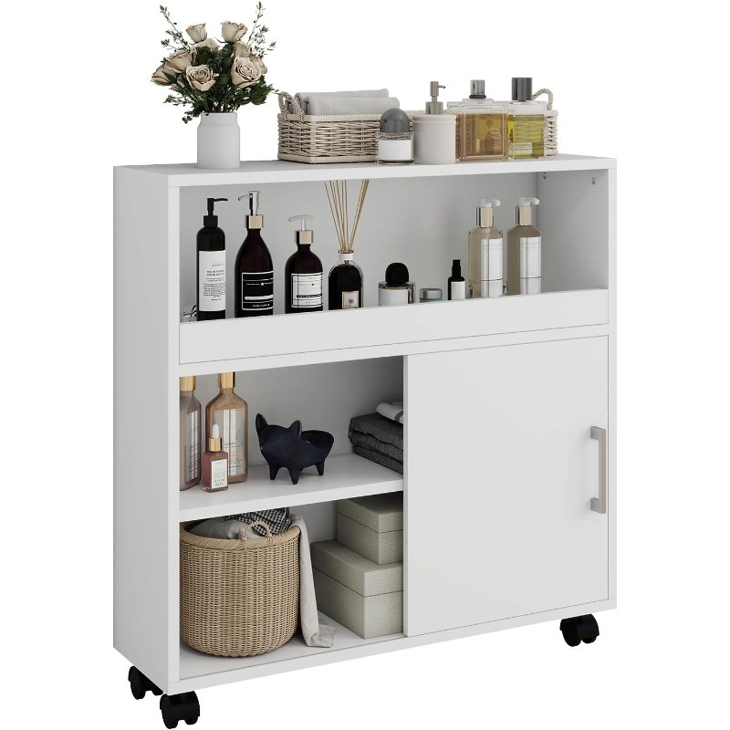 Narrow Slim Bathroom Organizer Storage Cabinet with Sliding Door