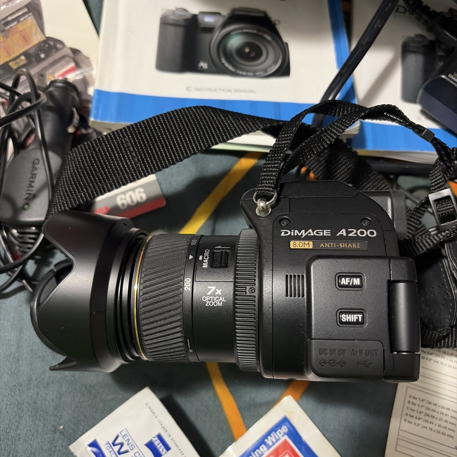 Konica Minolta DiMAGE A200 8MB Digital Camera, Manuals, Charger, 2 Battery Case