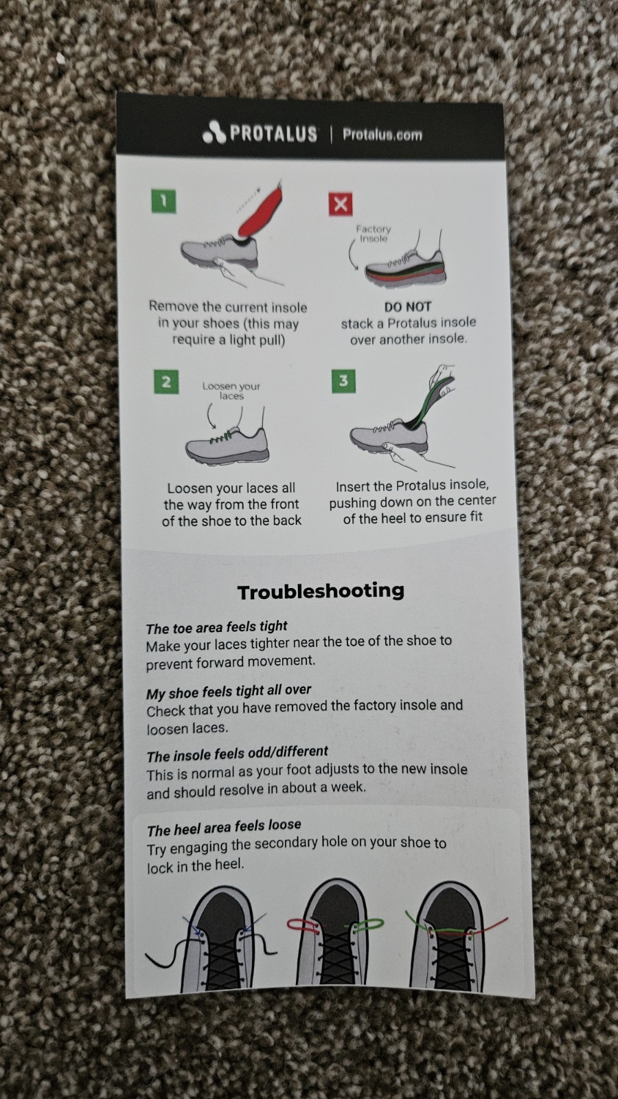 Protalus Shoe Insoles T100 New Mens Sz 5.5 Woman Sz 7 Foot Support Footwear
