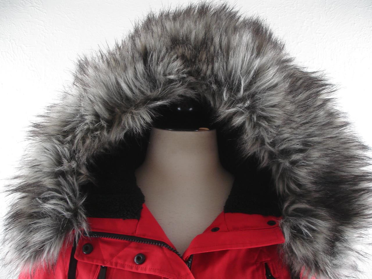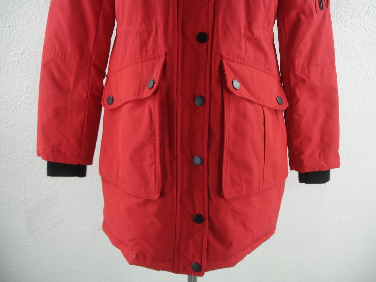 как выглядит Womens S Bcbg BCBGMaxAzria Red Parka Insulated Faux Fur Trim Hood Puffer Winter фото