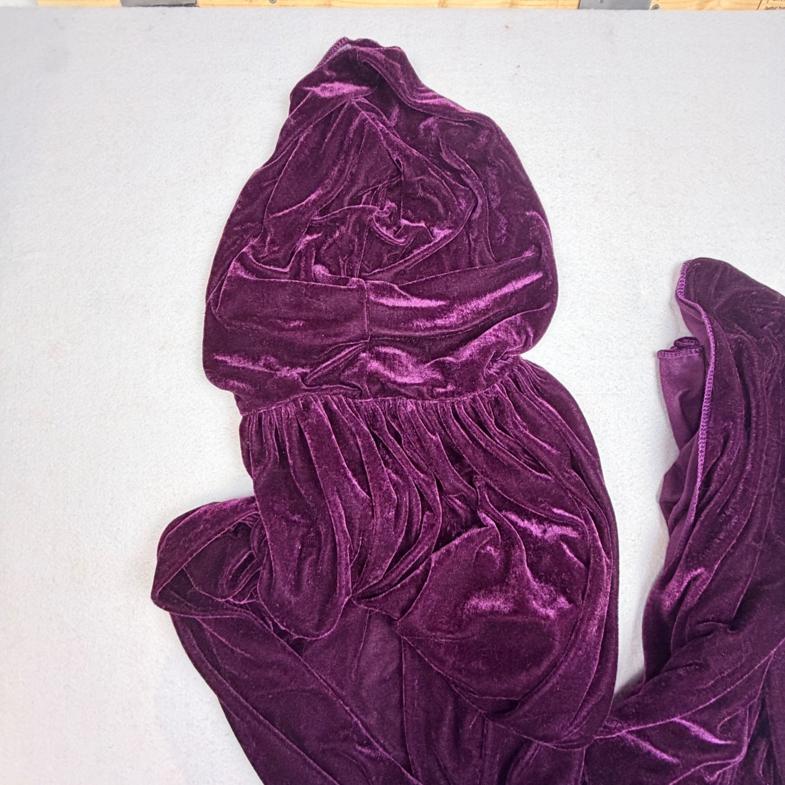 как выглядит Deep Purple Velvet Hooded Cloak Full Length Costume Cosplay Cape Ribbon Tie фото