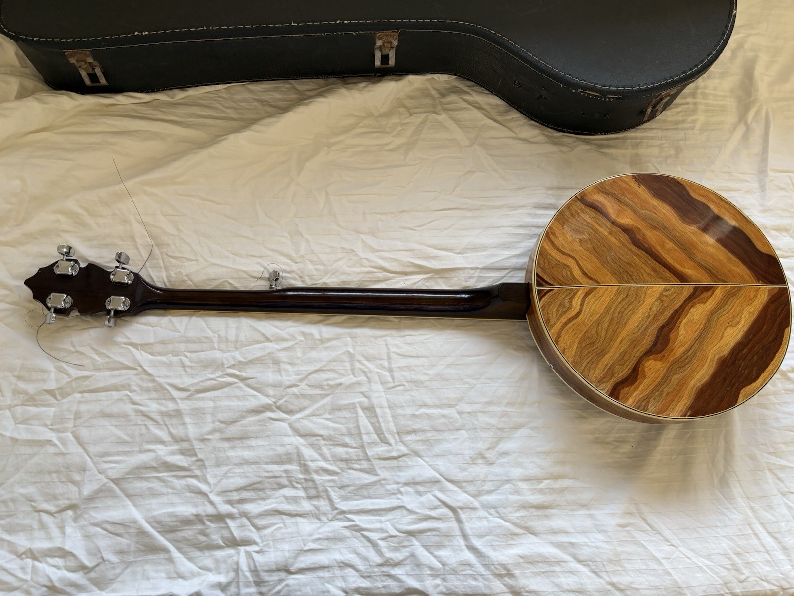 Conqueror 5-String Banjo Closed Back Wood Polished Brown White with Hard Case
