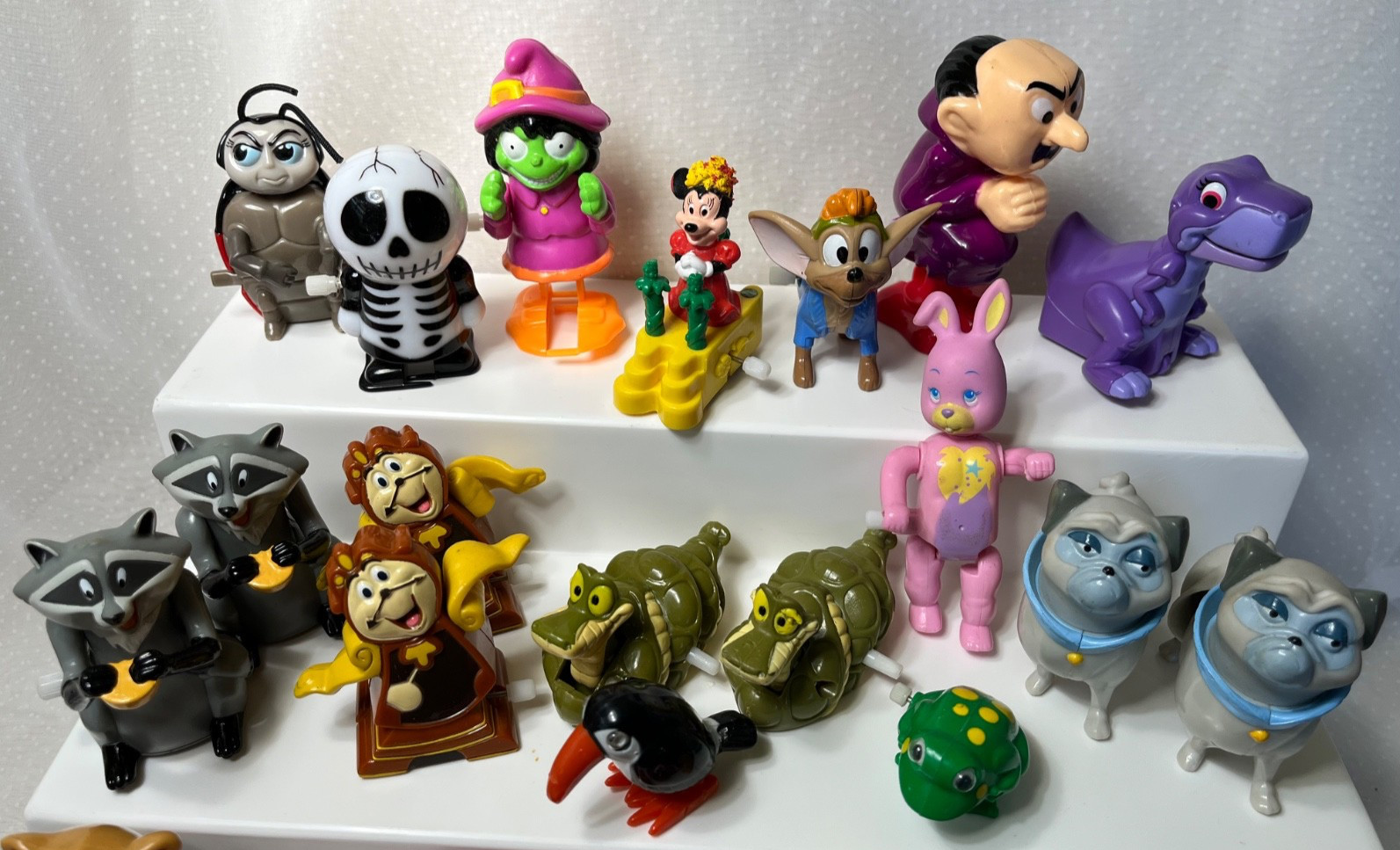 25 Vintage Tomy, Hong Kong, China, White Knob Wind Up Action Toys
