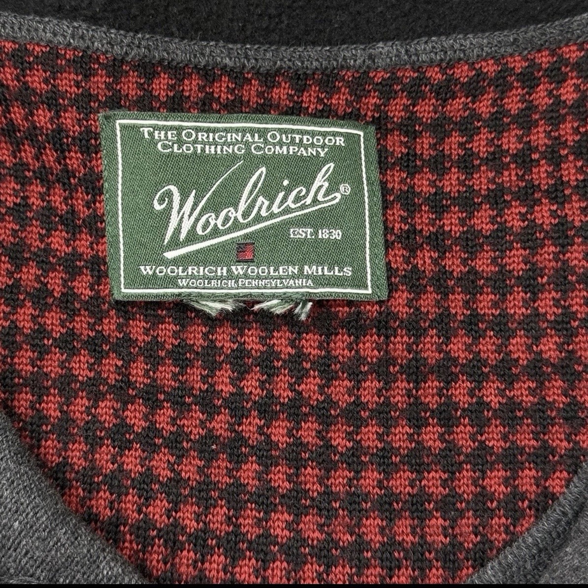 Vintage Woolrich Sweater Men s XXL Gray 1/4 Zip Pullover Charcoal Buffalo Check