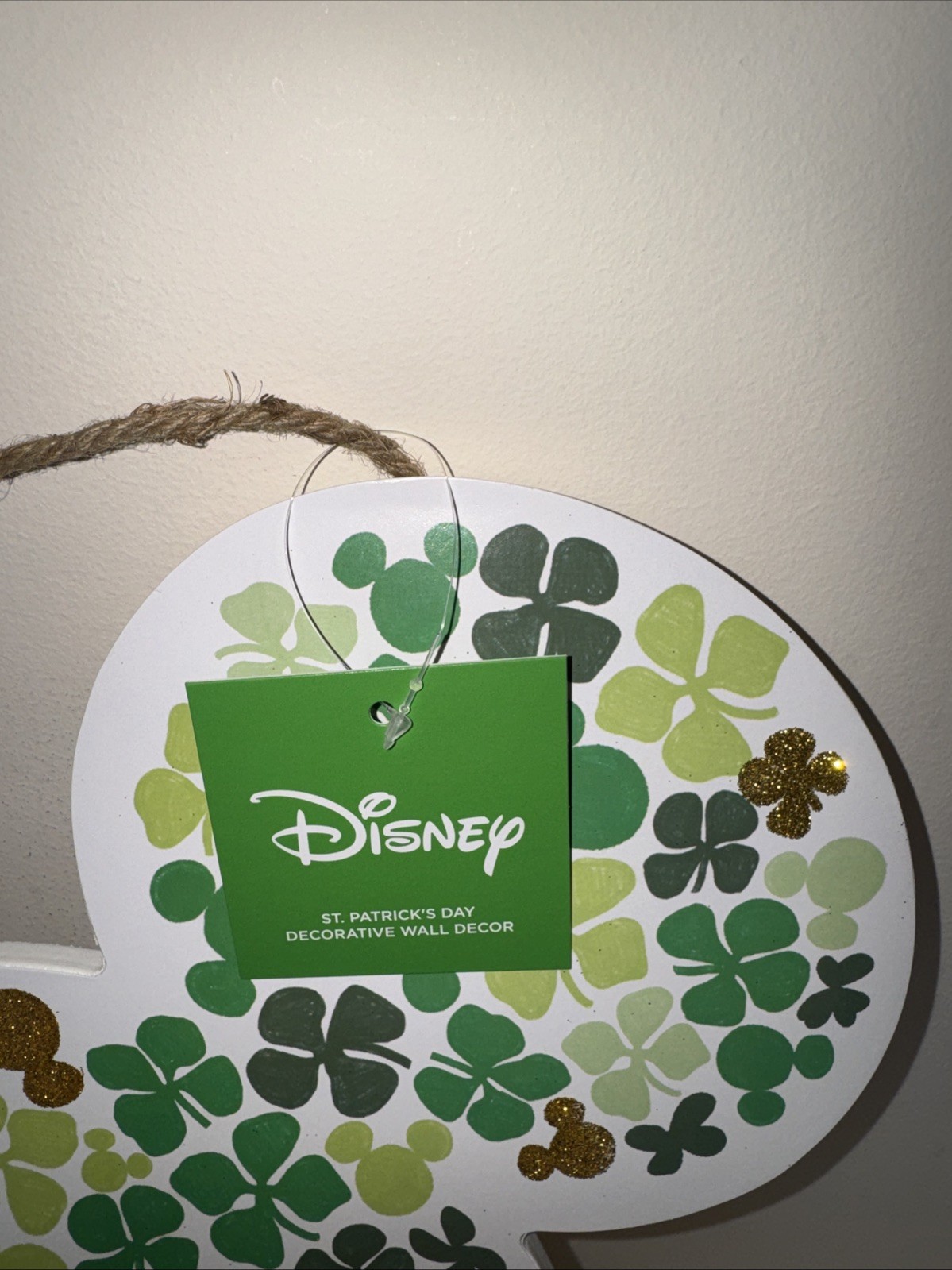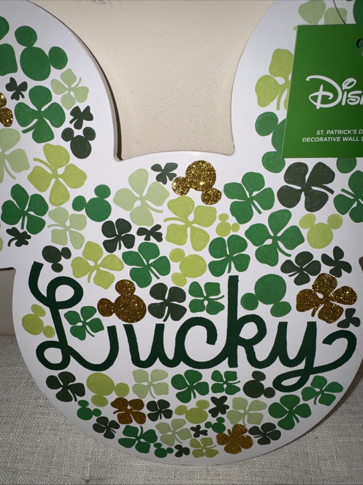 как выглядит St. Patricks Day Door Sign Mouse Shaped, Shamrock Wooden Hanging Sign Lucky ... фото