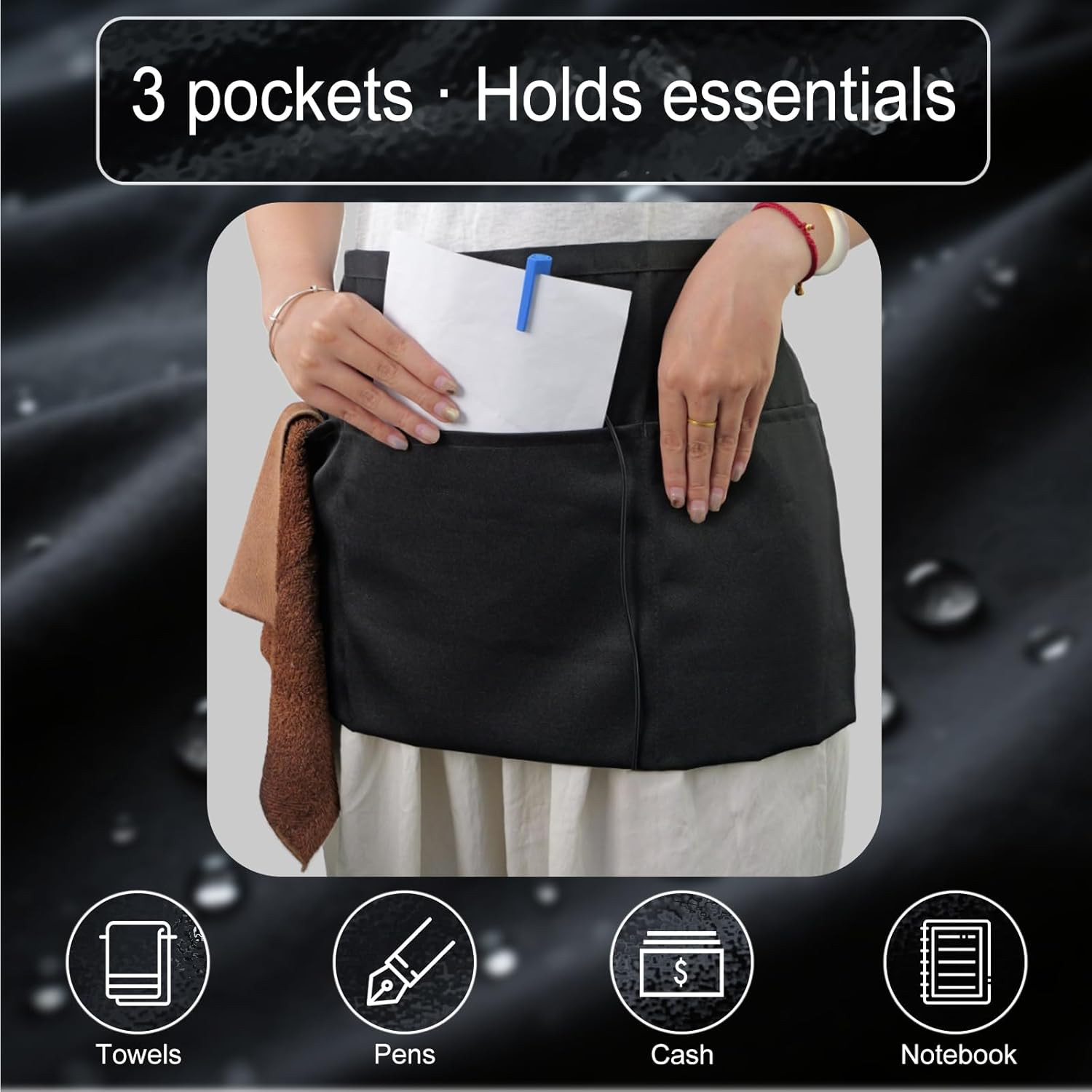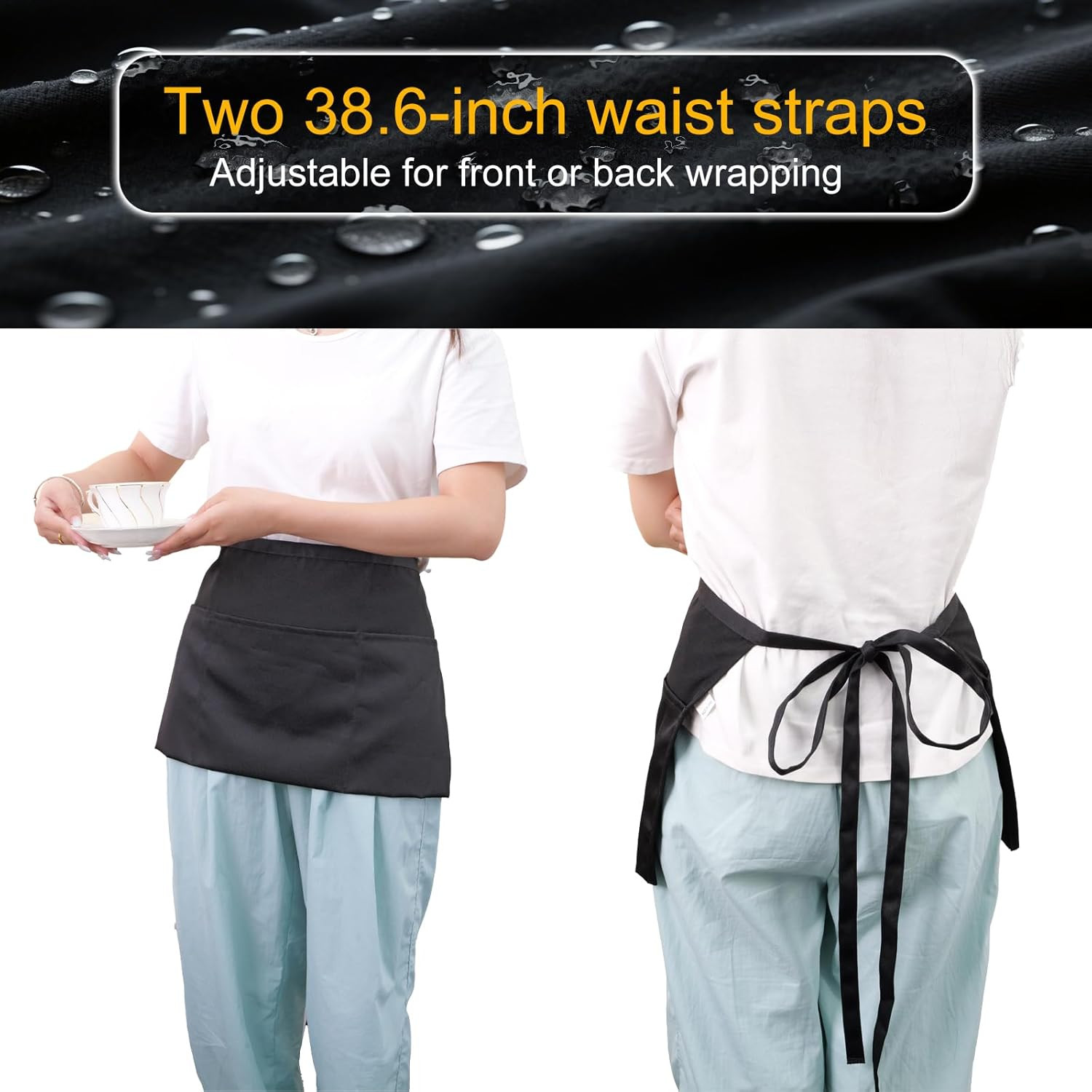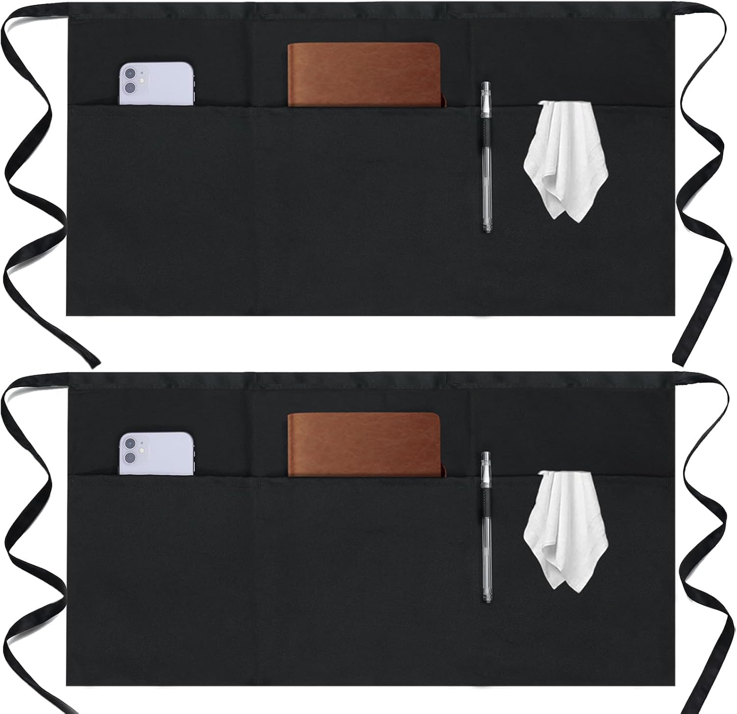 как выглядит 2 Pack Server Apron - Waist Half Aprons for Waitress with 3 Pockets, Black Short фото