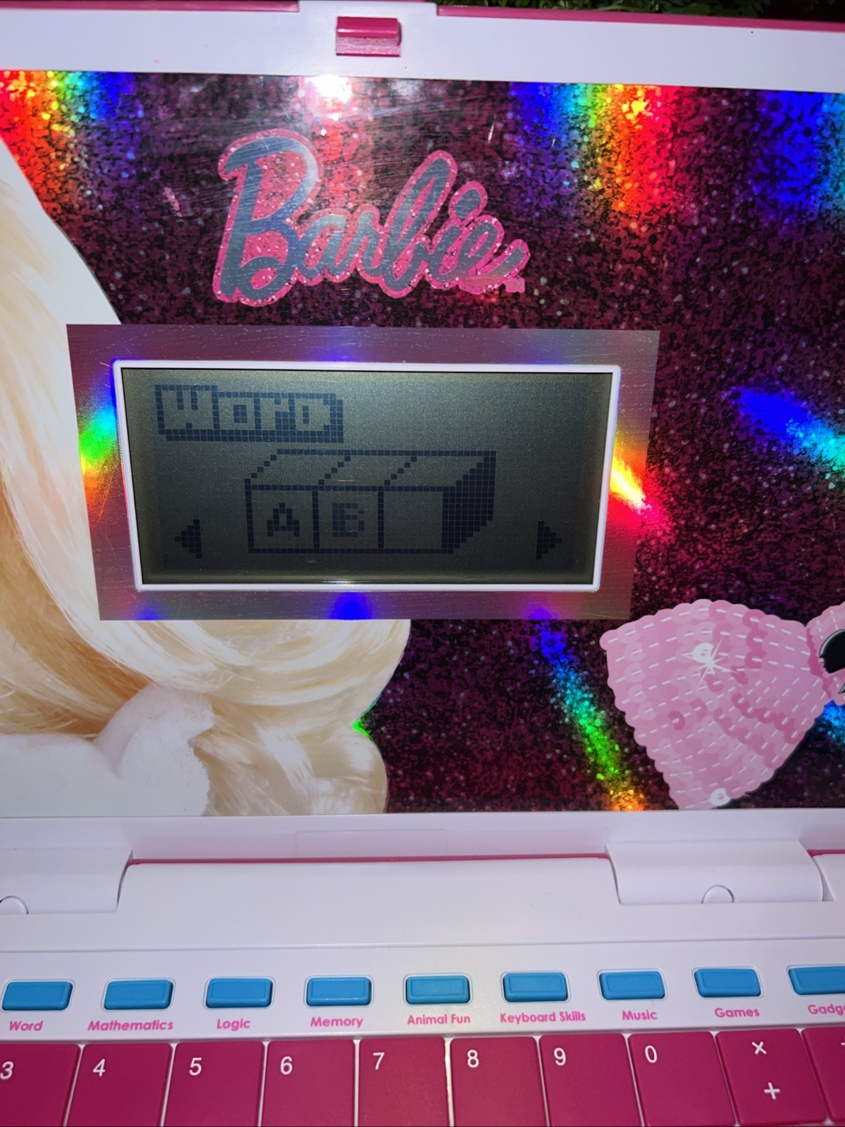 Barbie-themed electronic learning laptop toy manufactured Oregon Scientific.