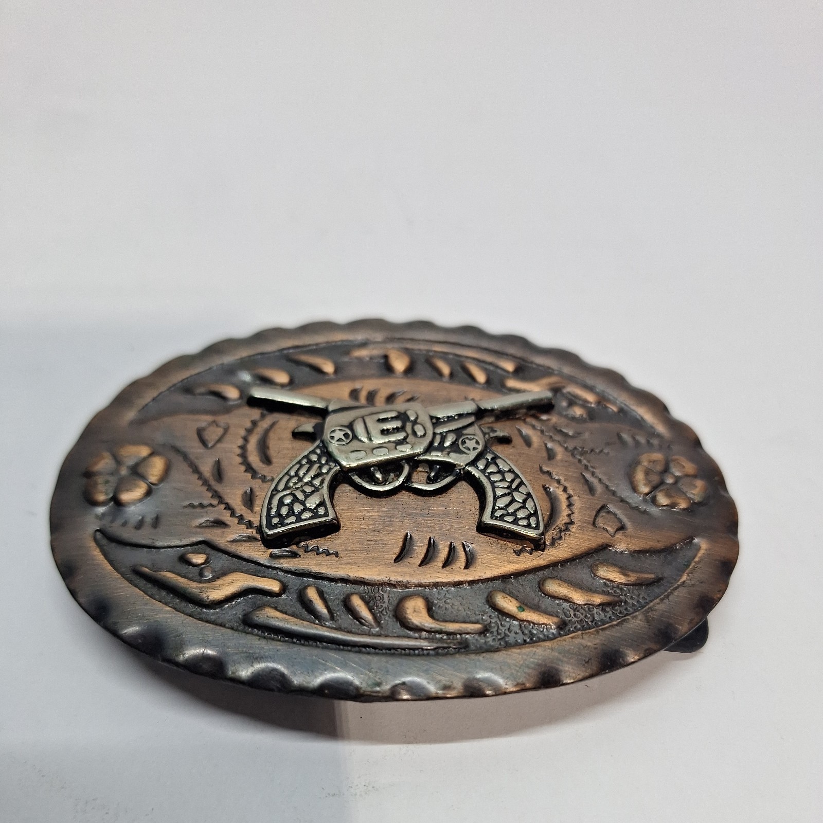 как выглядит Two Pistols Belt Buckle Guns Silver Bronze Color Urban Cowboy Indie Western VTG фото