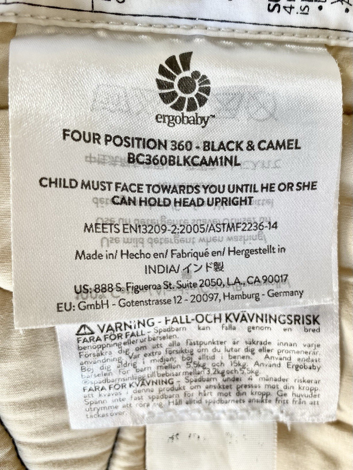 Ergo Baby Four Position 360 Baby Carrier Black/Tan Washable