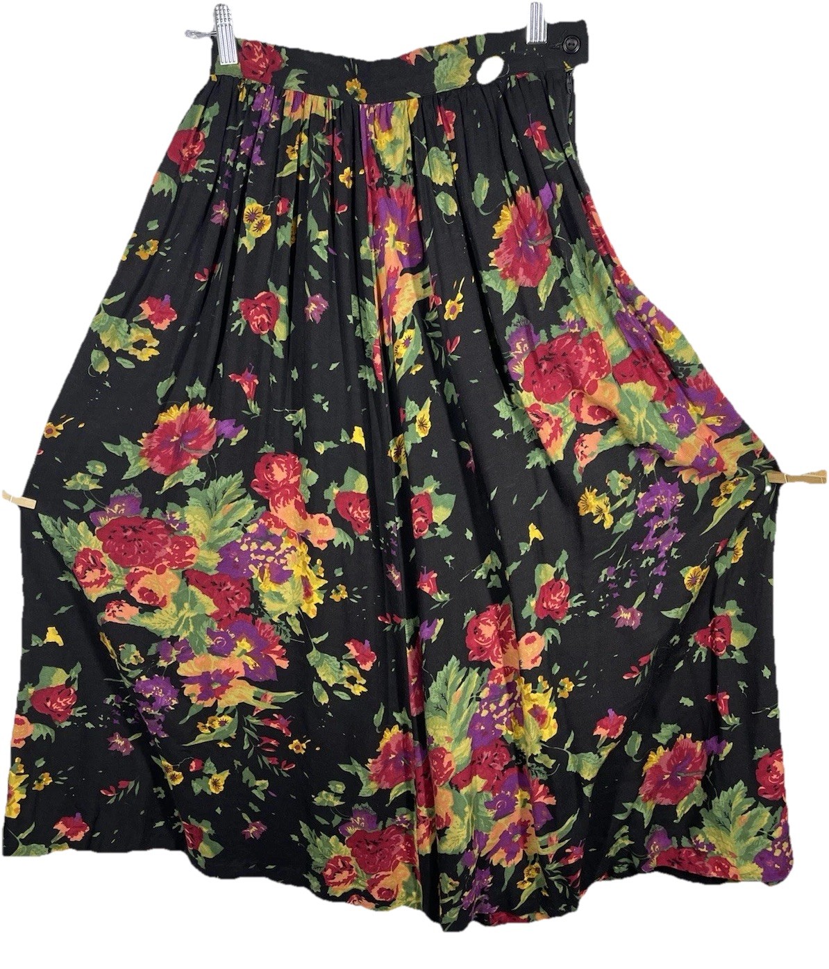 Vintage Cottage Core Floral Maxi Skirt Size 6 Y2K Prairie Whimsigoth Black Red