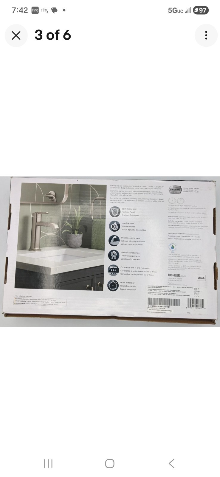 как выглядит Kohler Cordate Single-handle Bathroom Faucet Brushed Nickel R30283-4D-BN - NOB фото