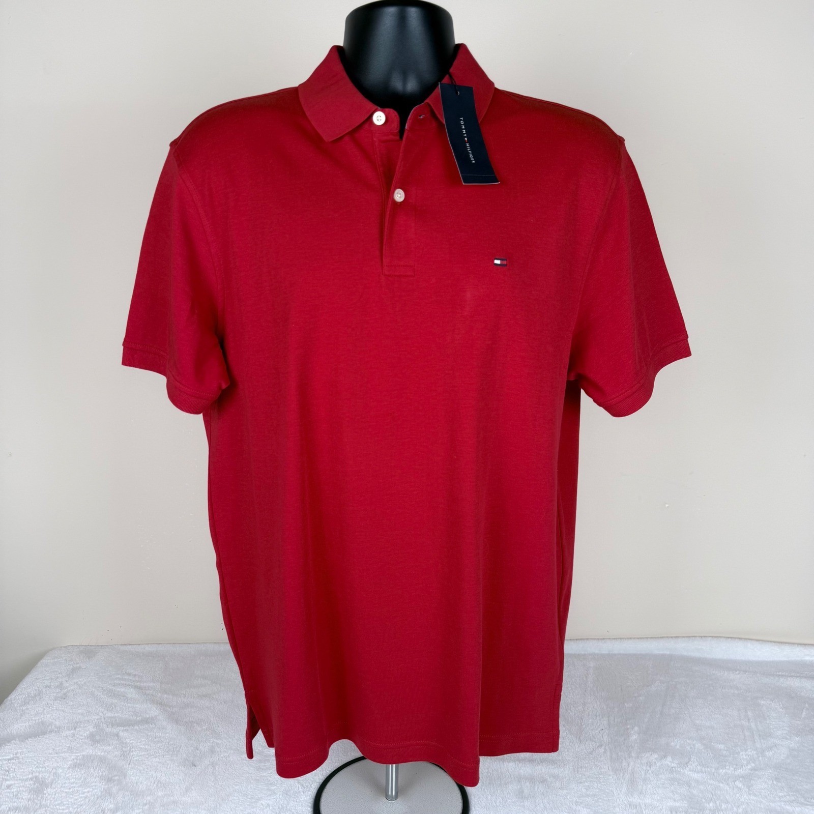 Tommy Hilfiger Mens Short Sleeve Polo Shirt Red Cotton XM03525-601 Medium NWT