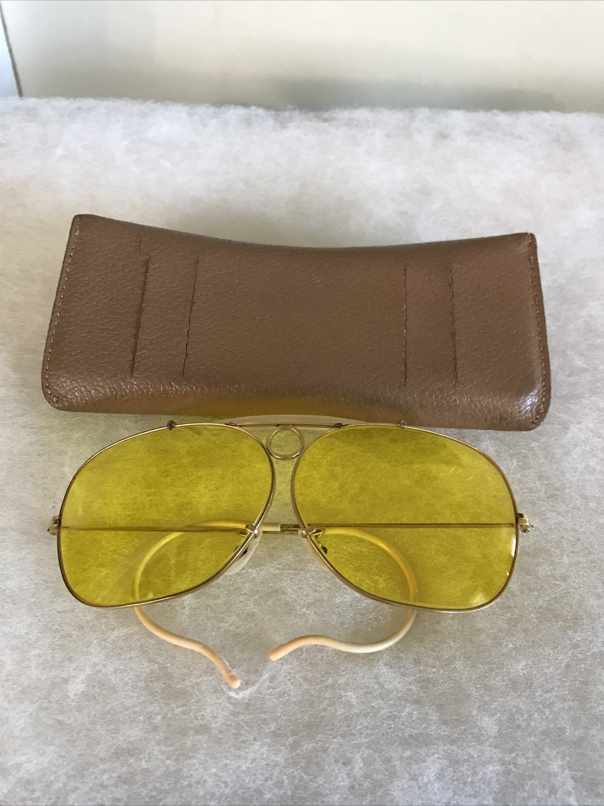 как выглядит Vintage B L RAY-BAN 1/10 12KGF BULLET HOLE YELLOW LENS SHOOTER SUNGLASSES W/Case фото