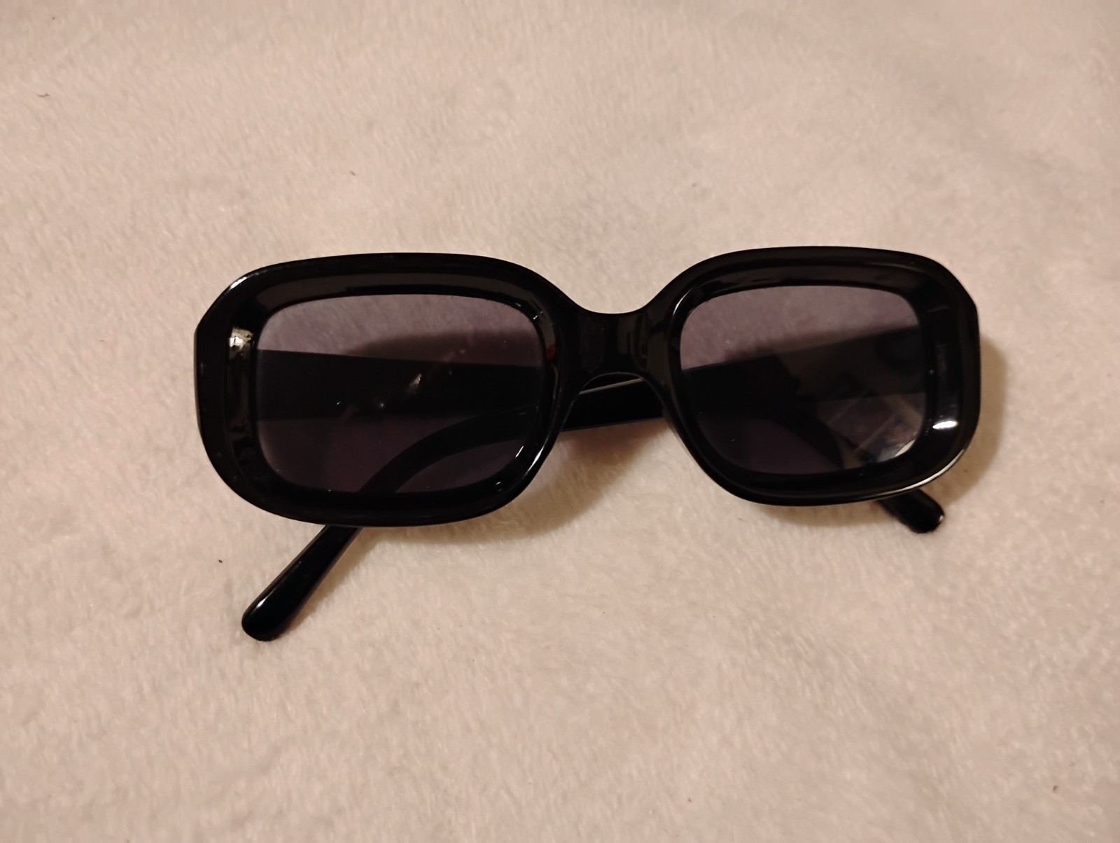 VINTAGE BLACK RECTANGLE SUNGLASSES BLACKED OUT MODERNIST GANGSTER MOB SHADES HTF