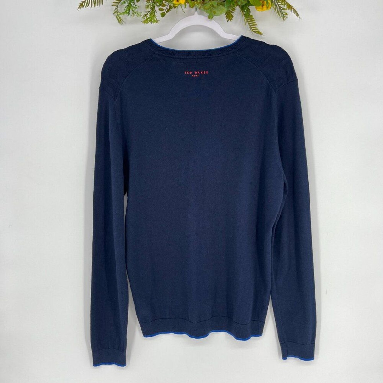как выглядит Ted Baker Golf Navy Blue Textured V-Neck Sweater Mens Size 4 Classic Preppy фото