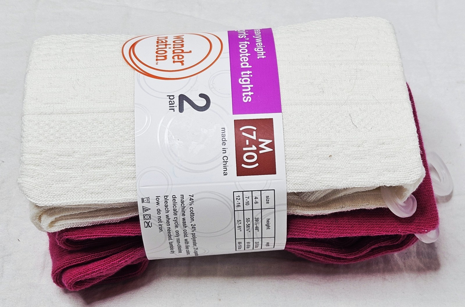 Wonder Nation Girls Footed Tights 2 Pair Heavyweight Pink White Size M 7-10
