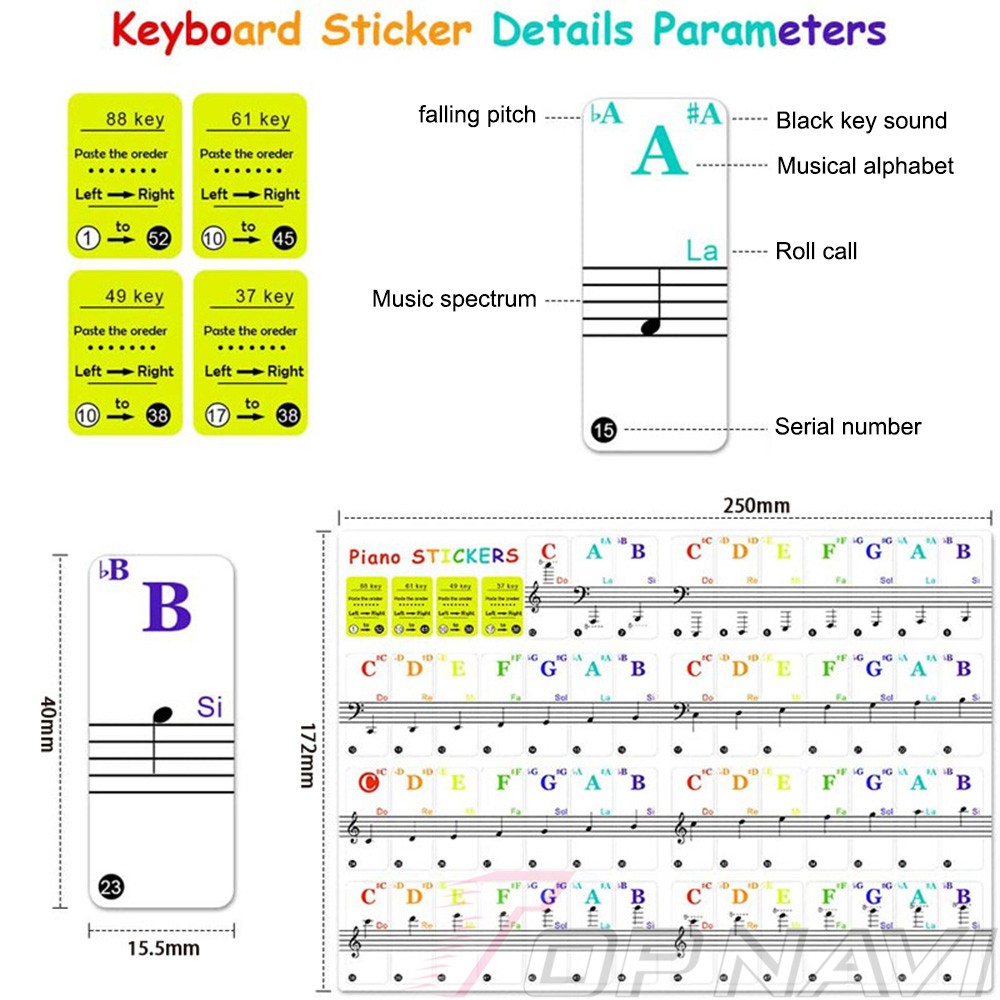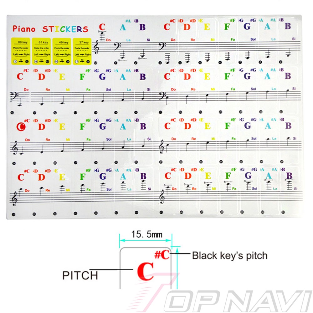 Piano Keyboards Note Stickers Transparent Removable Staff stickers Colorful