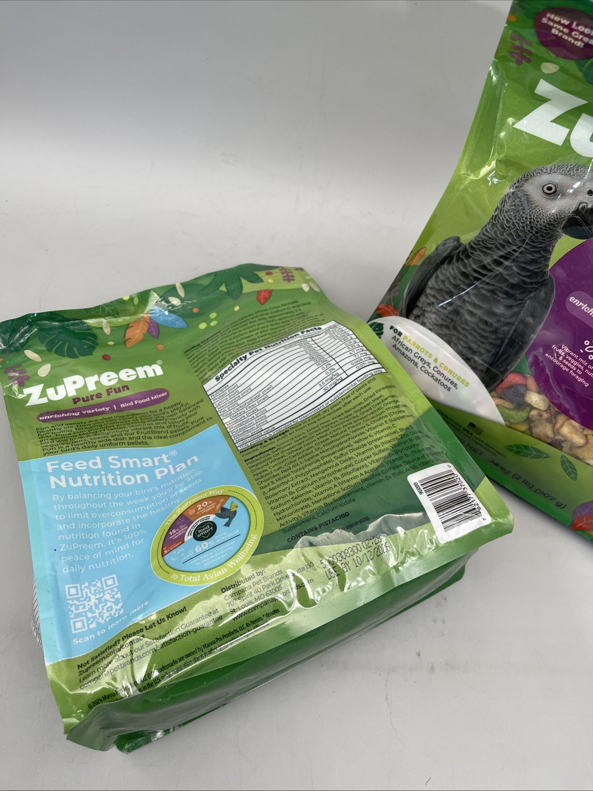 2 Pack ZuPreem Pure Fun Bird Food 2lb Fruit Blend for Parrots and Conures