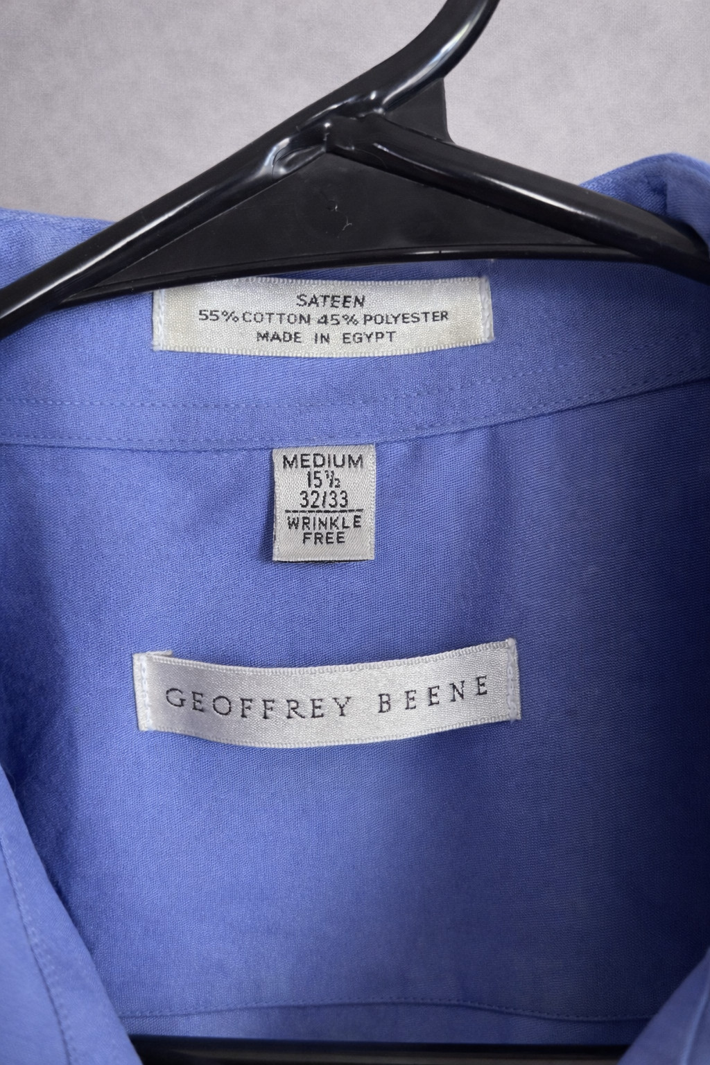 как выглядит Geoffrey Beene Dress Shirt Mens Medium 15.5 32/33 Blue Wrinkle Free Sateen фото