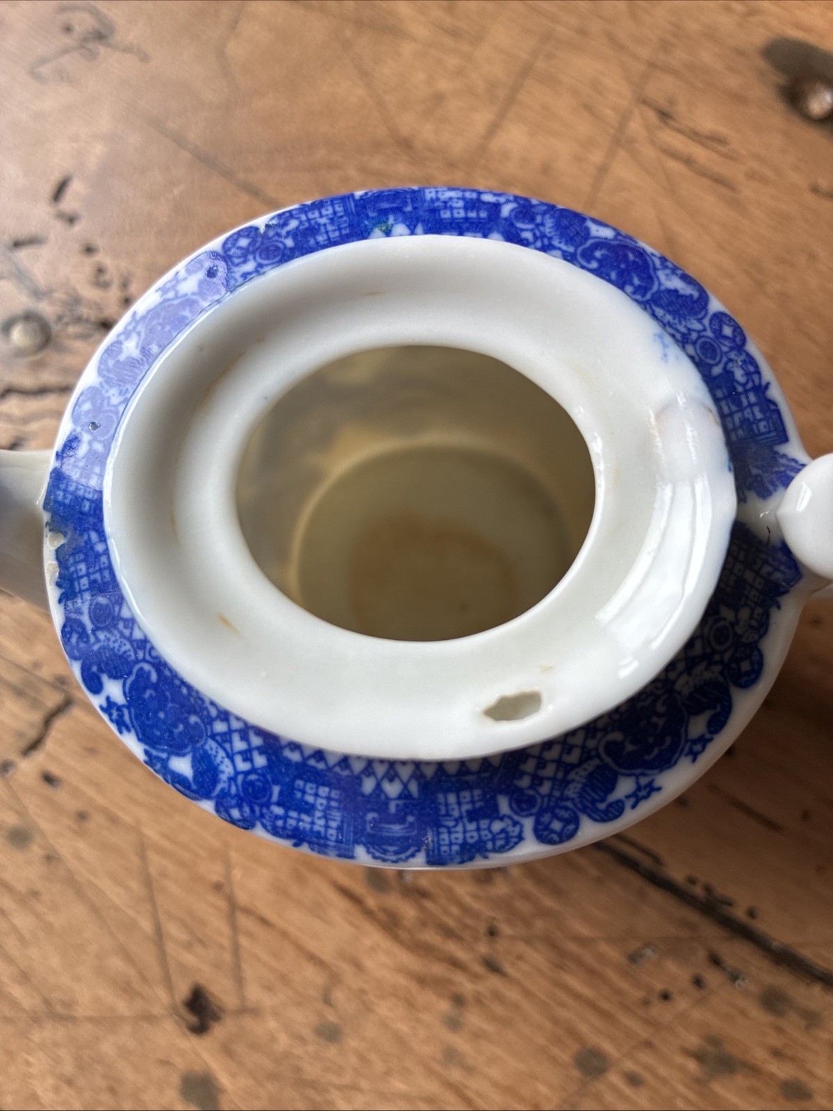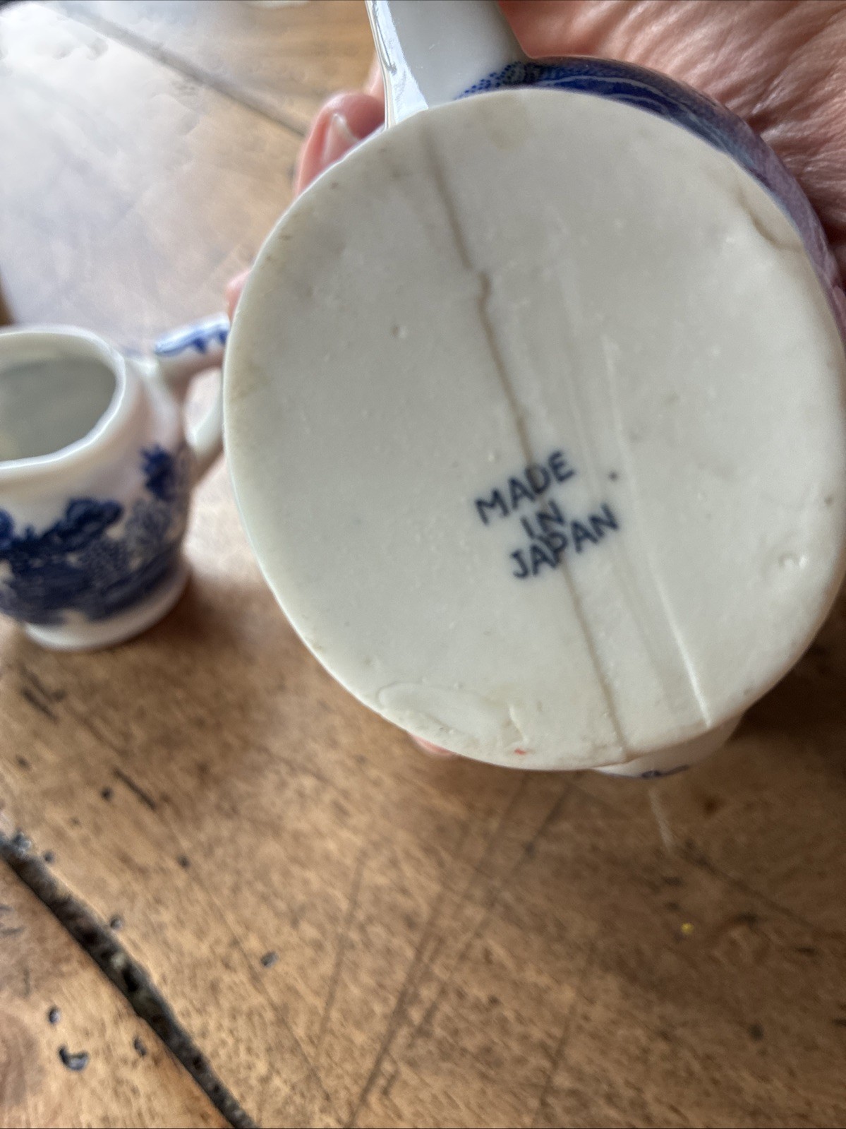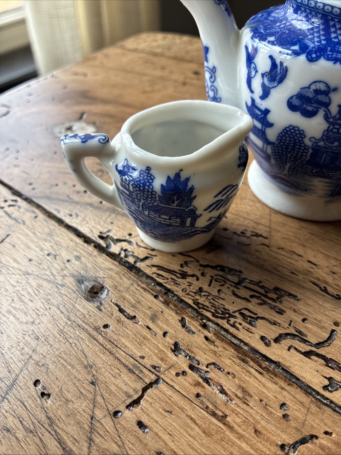 как выглядит Child s Blue Willow Miniature Teapot And Creamer фото