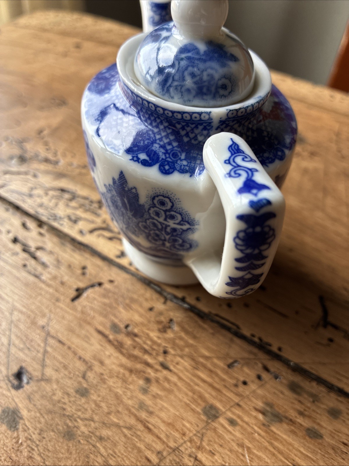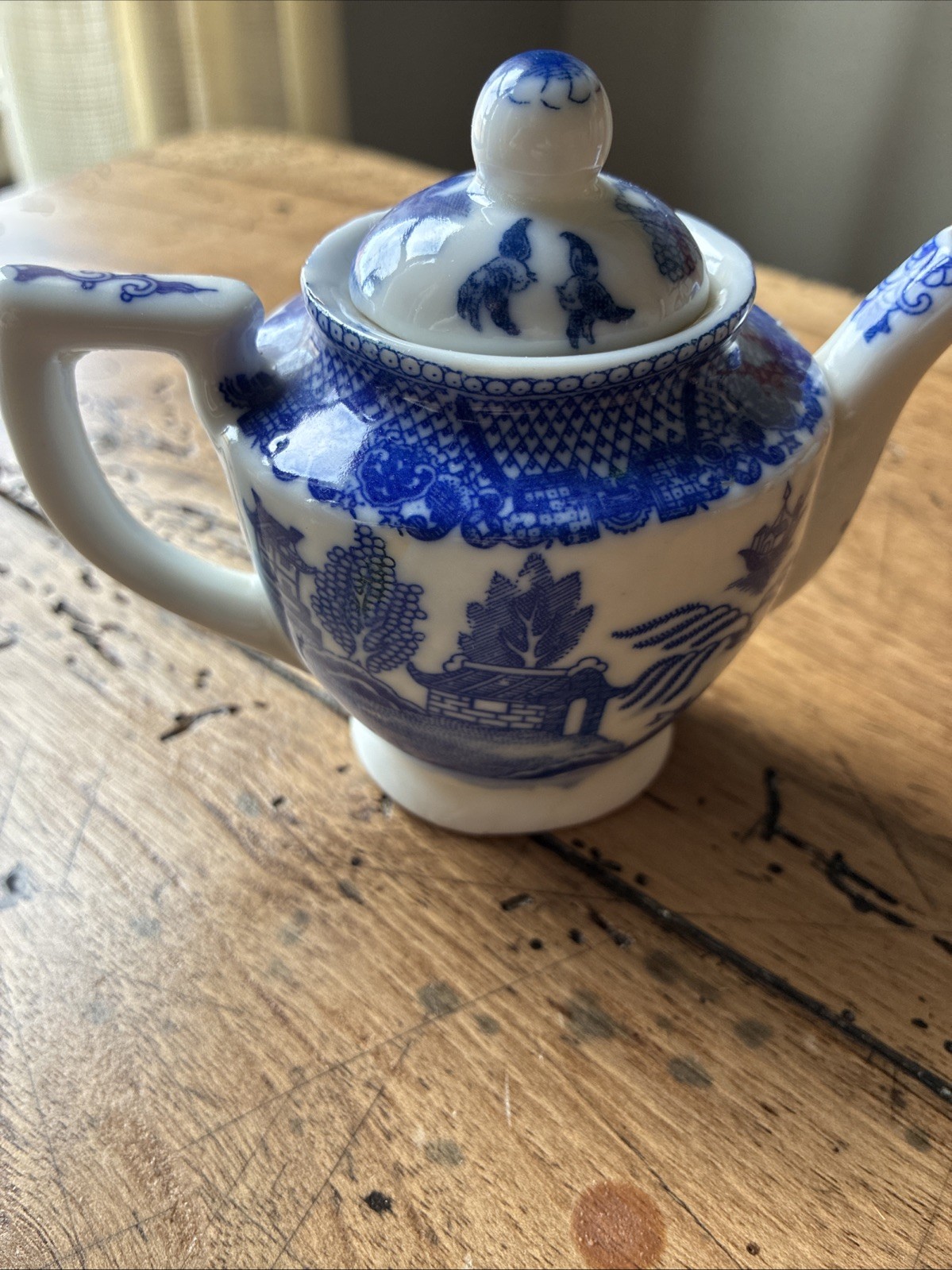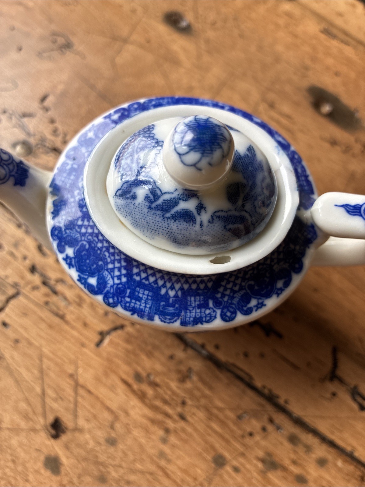 как выглядит Child s Blue Willow Miniature Teapot And Creamer фото