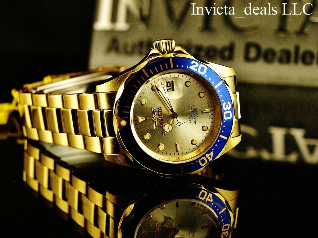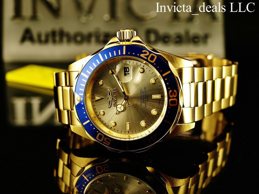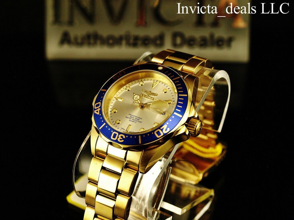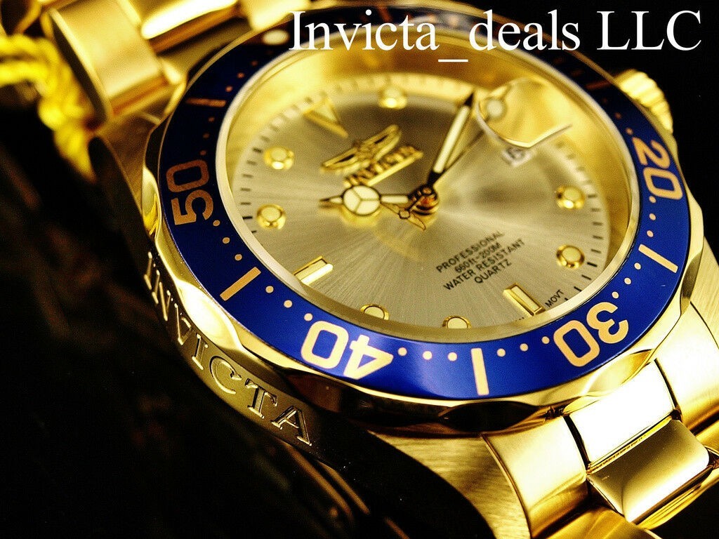 Invicta Men's 40mm Pro Diver Quartz CHAMPAGNE DIAL Gold Tone Stainess Steel Watc
