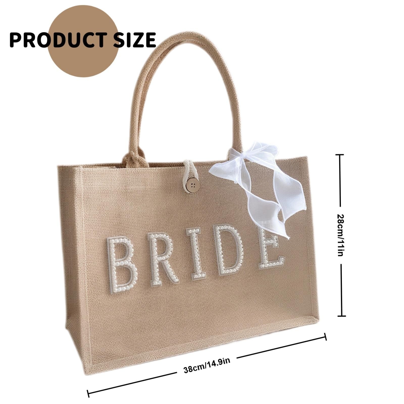 Bride Tote Bag Large Natural Jute Beach Bag Gold