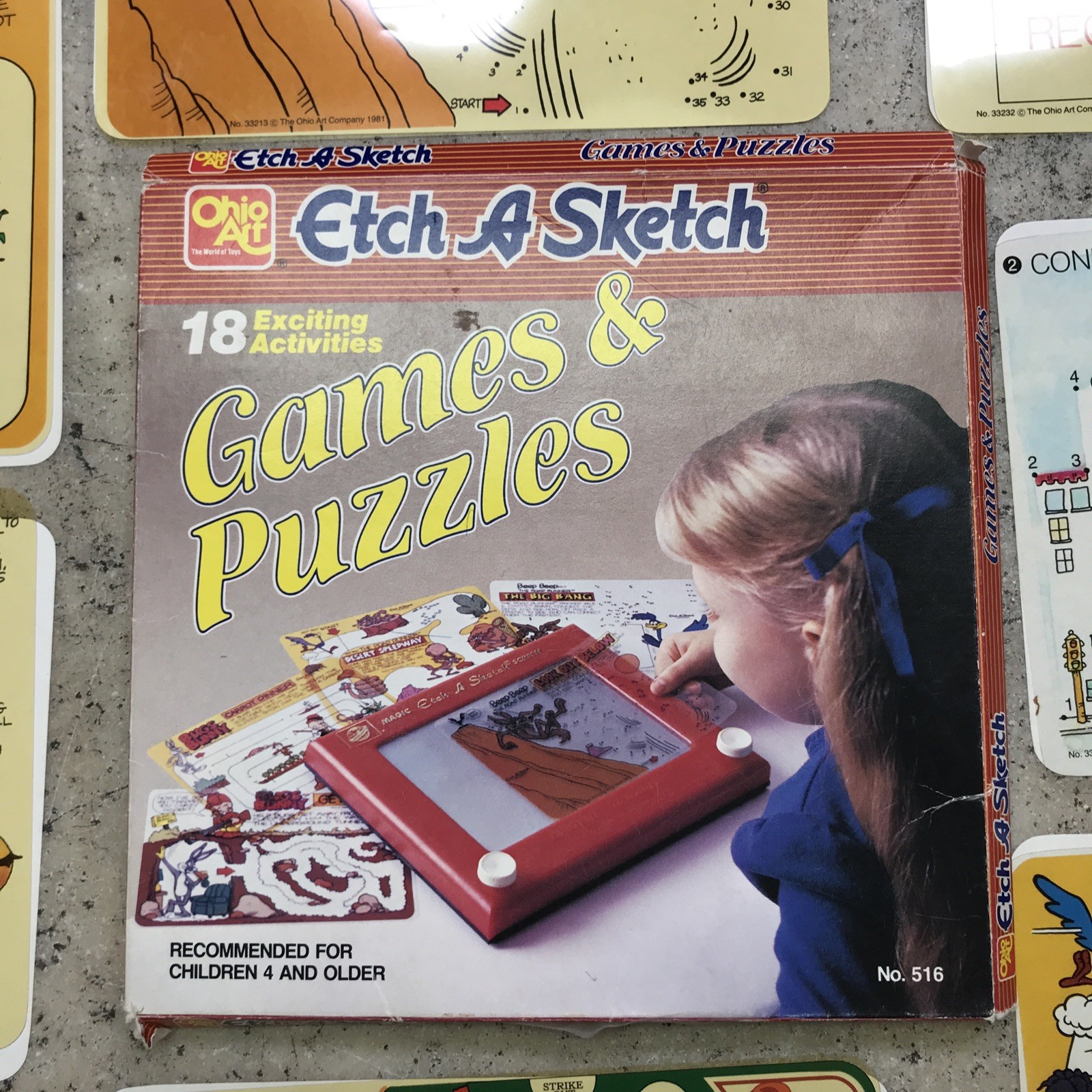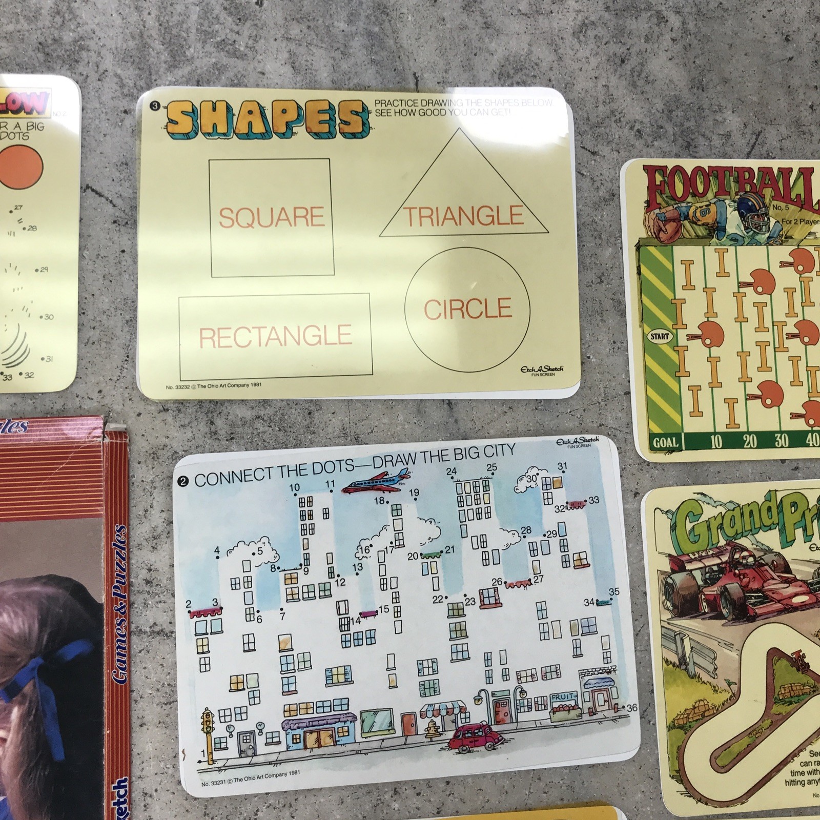 как выглядит Vintage Ohio Art Set Of 19 Etch A Sketch Games Puzzles 516 1988 Original Box фото