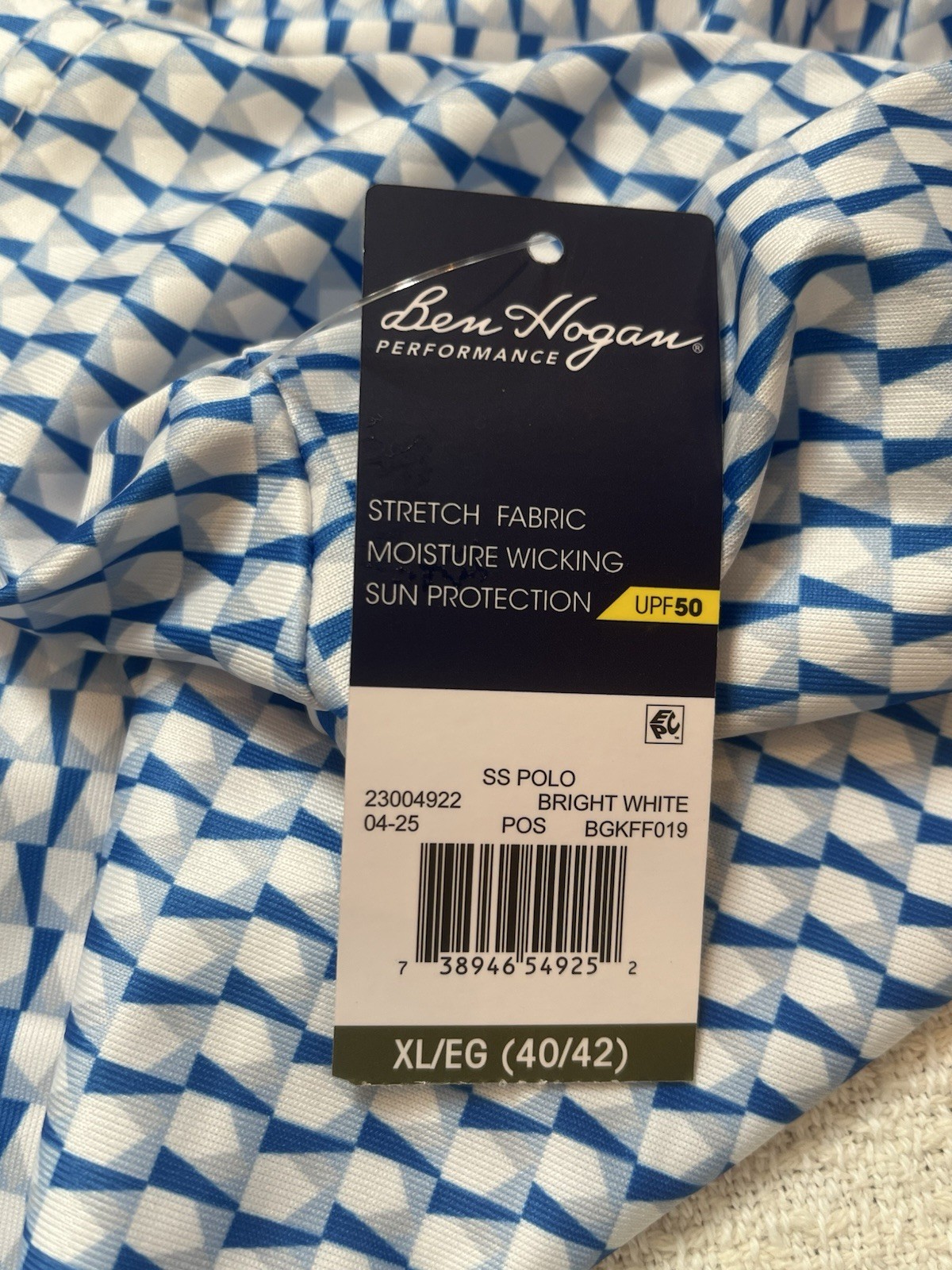 NWT Ben Hogan Performance Short Sleeve Polo Men s XLarge Blue White UPF 50