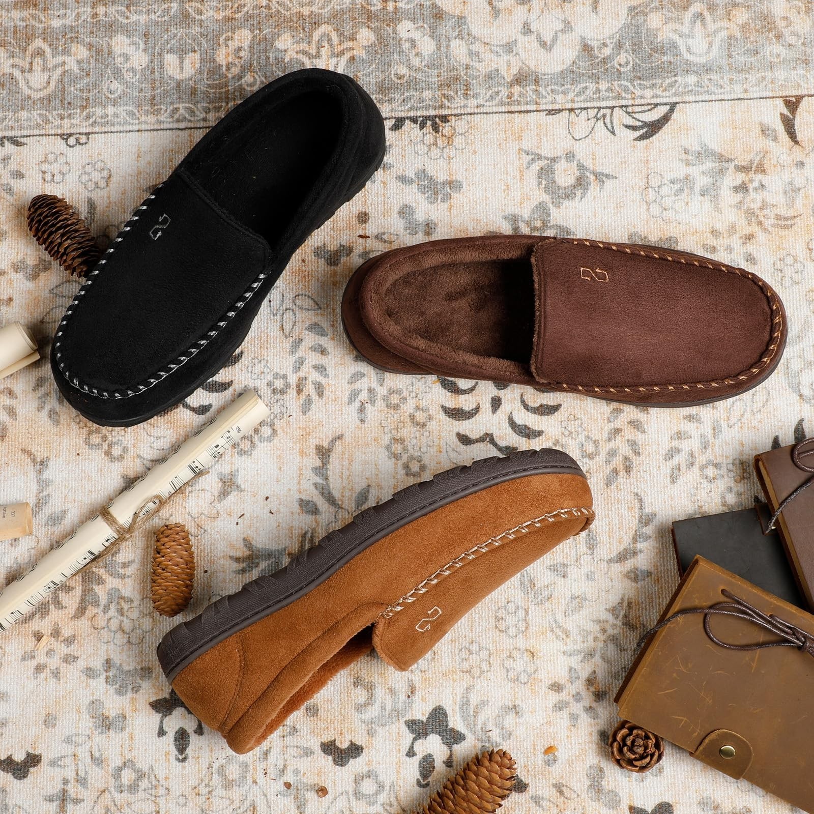 Men's Moccasin Slippers With Memory Foam, House Shoes for Indoor Outdoor