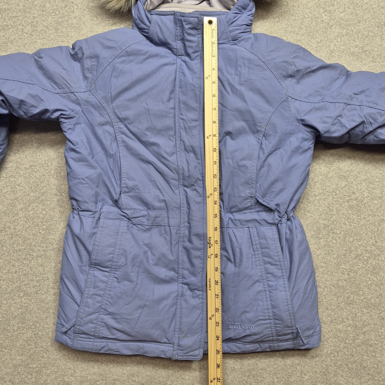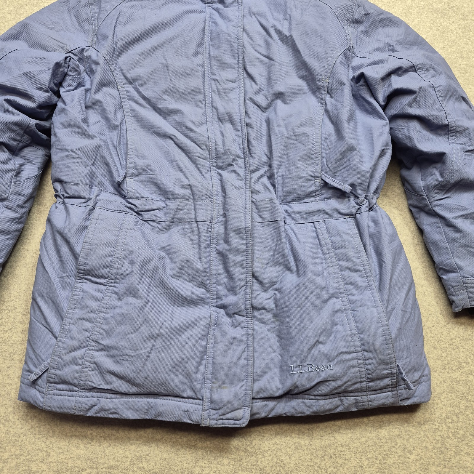 как выглядит L.L. Bean Girls M 10-12 DownTek 650 Goose Down Jacket Puffer Hooded Coat Blue фото