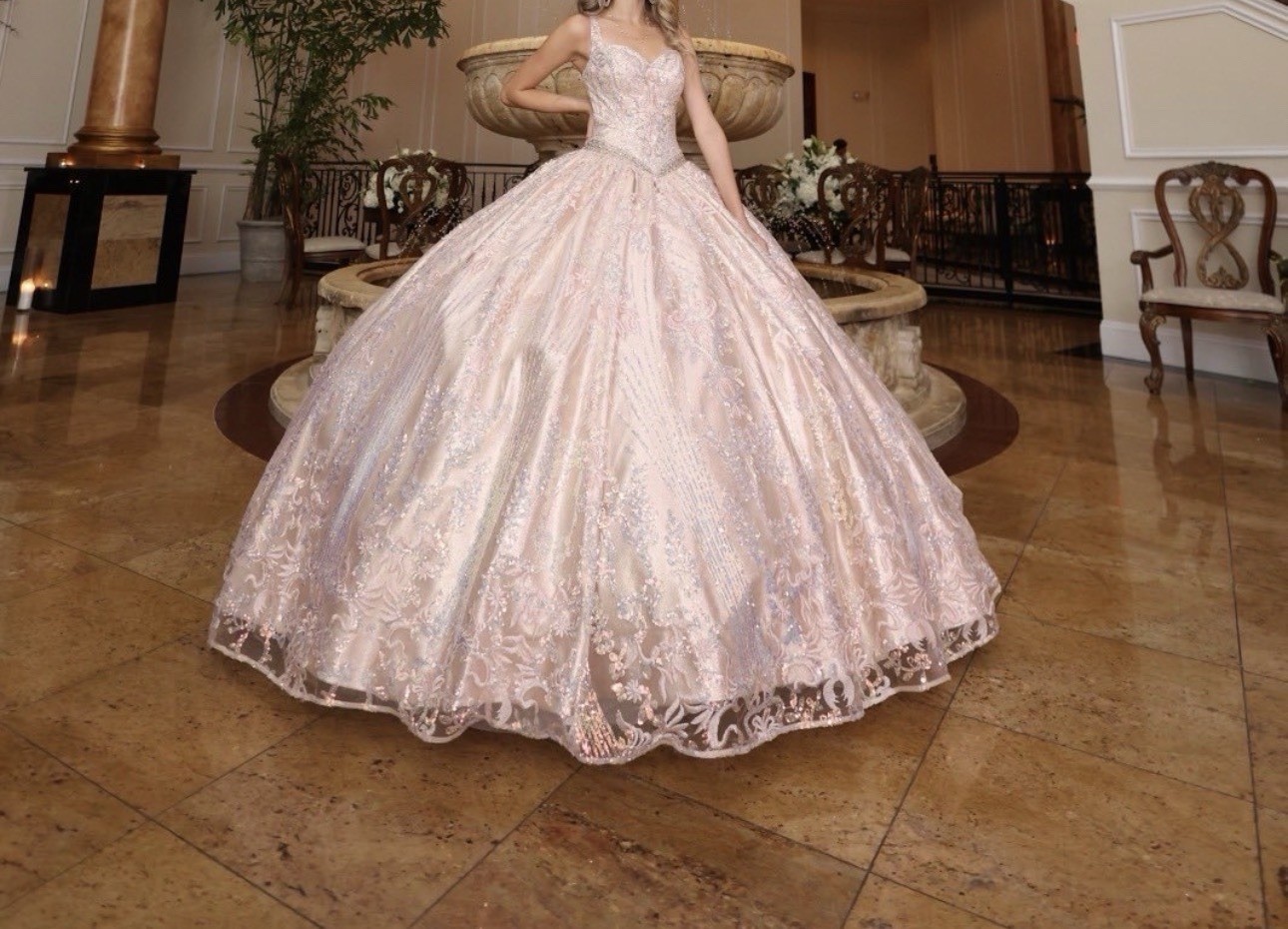 как выглядит Blush Lace Ball Gown Wedding Dress Sweetheart Neckline Beaded Sleeveless фото