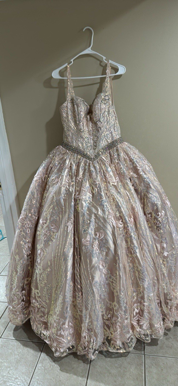 Blush Lace Ball Gown Wedding Dress Sweetheart Neckline Beaded Sleeveless