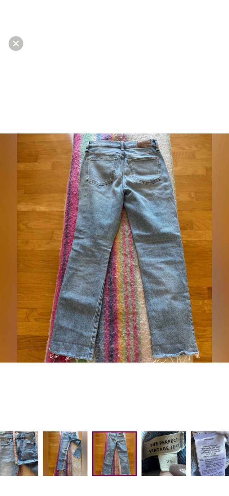 как выглядит Madewell The Perfect Vintage Jean High Rise Straight Light Blue Distressed Jeans фото