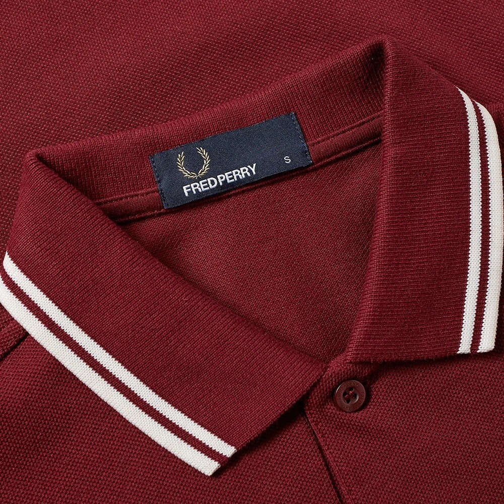 Fred Perry Polo Shirt Red White Slim Fit Pique Twin tipped