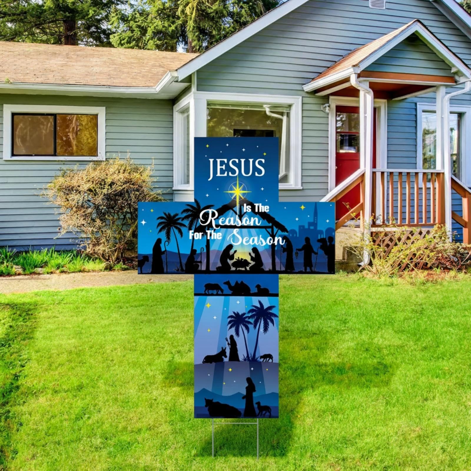 3.6ft Jesus is The Reason for The Season Yard Sign with Metal Stakes Holy Nat...