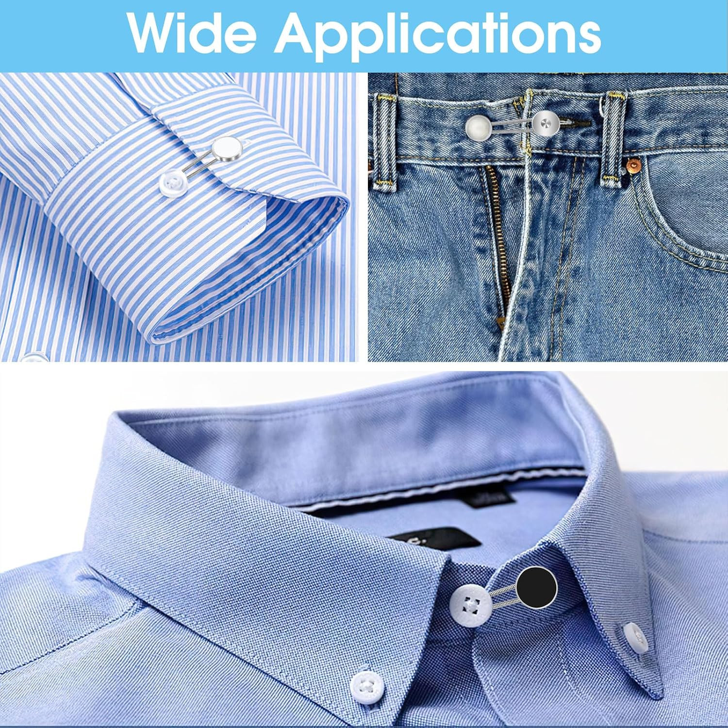 как выглядит 16 Pcs Collar Extenders for Mens Shirts, Elastic Button Extender for Dress Shirt фото