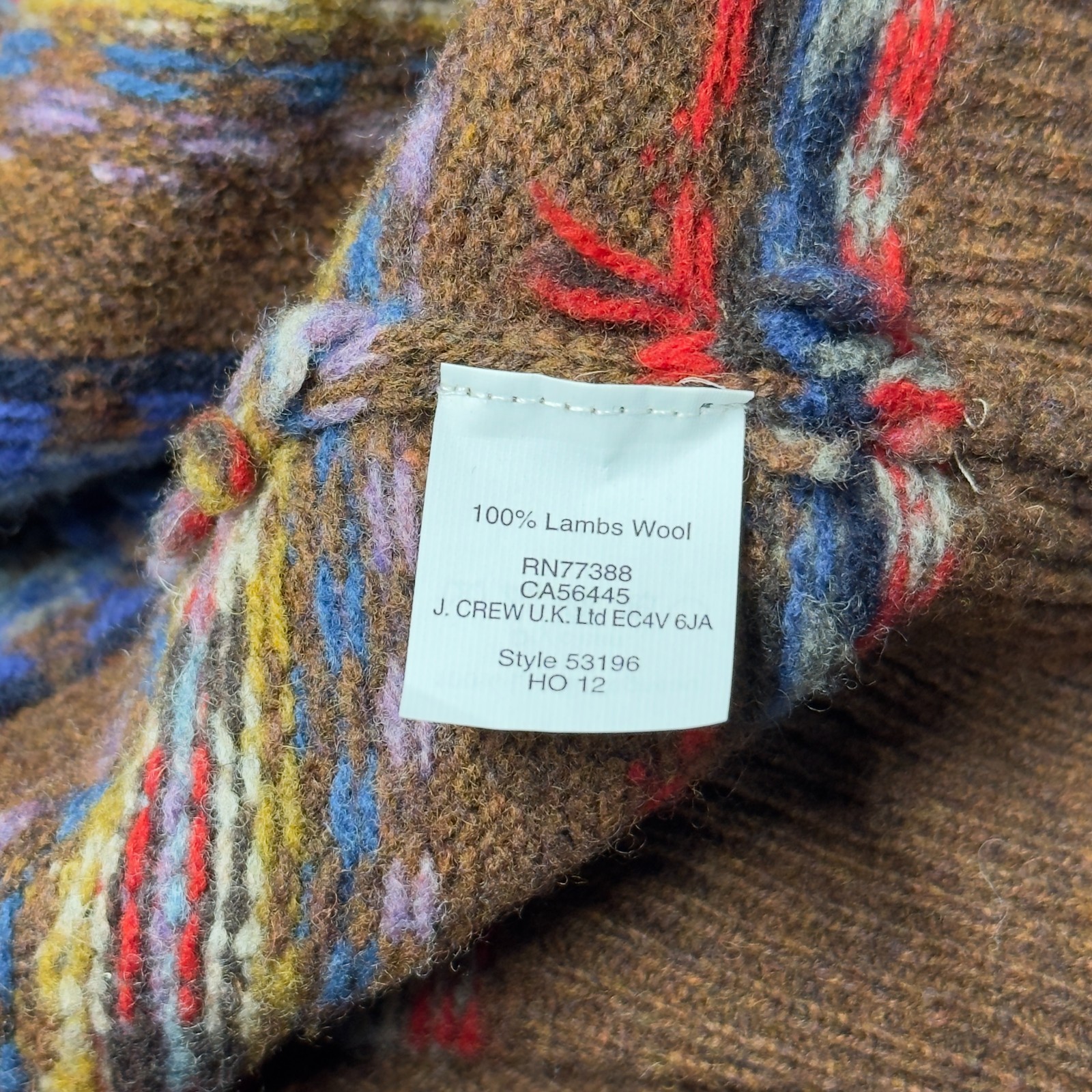 J Crew 100 Lambswool Fair Isle Knit Sweater Brown 53196 Pullover Men Small
