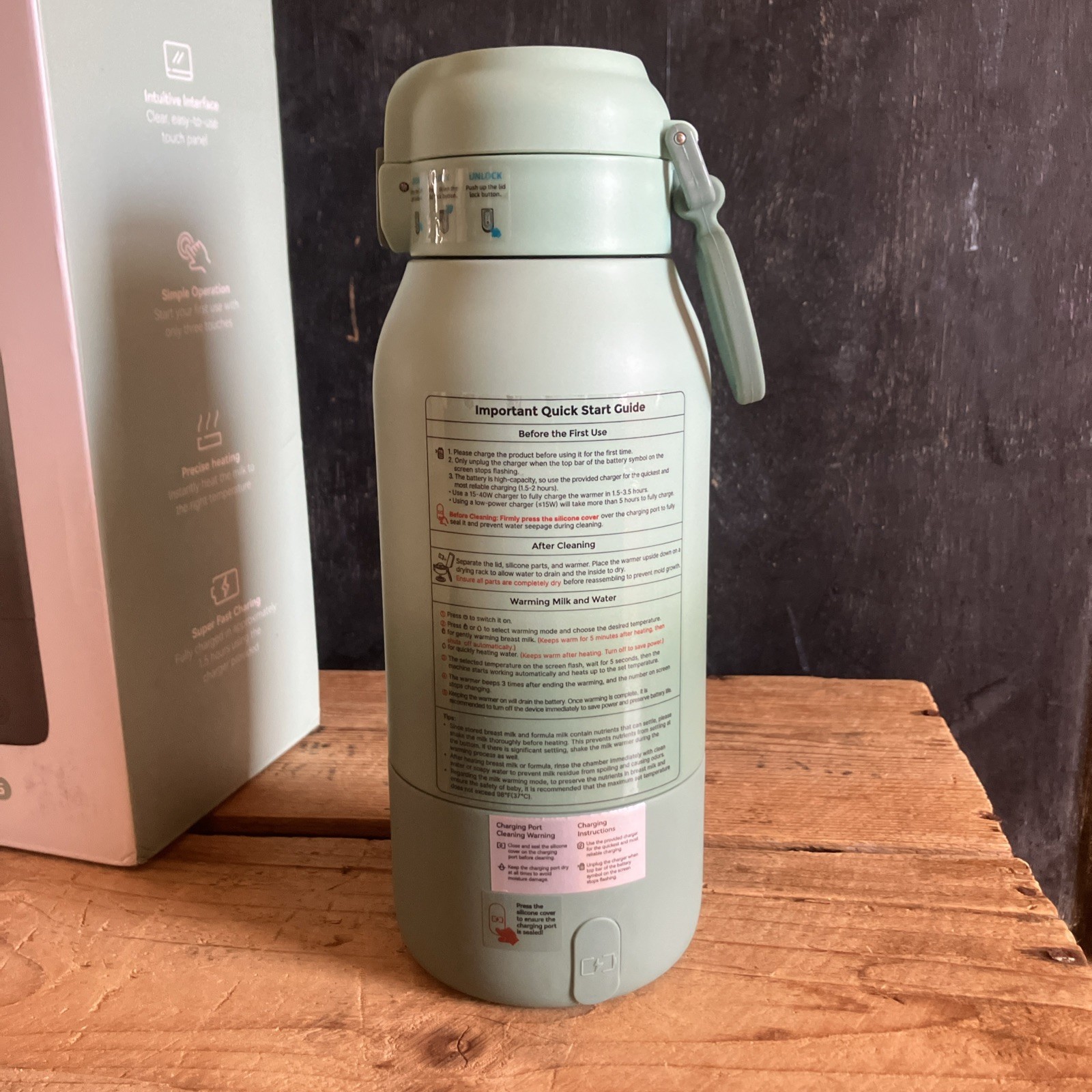 Momcozy MW05 Portable Bottle Milk Warmer 17oz Travel Fast Heating Green Open