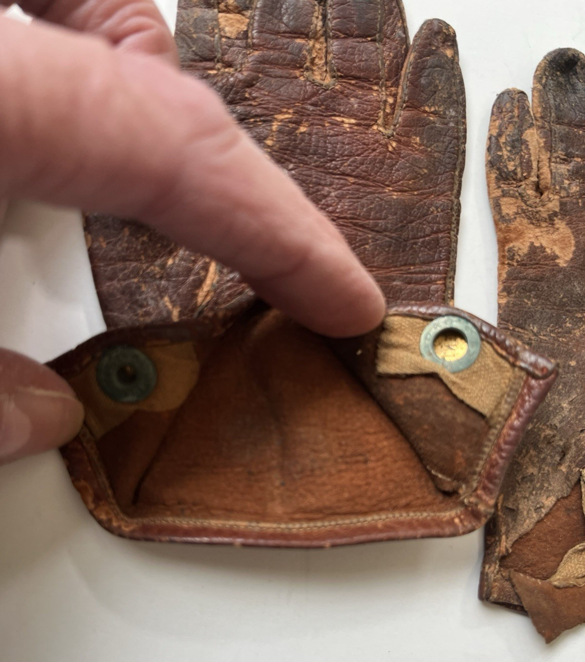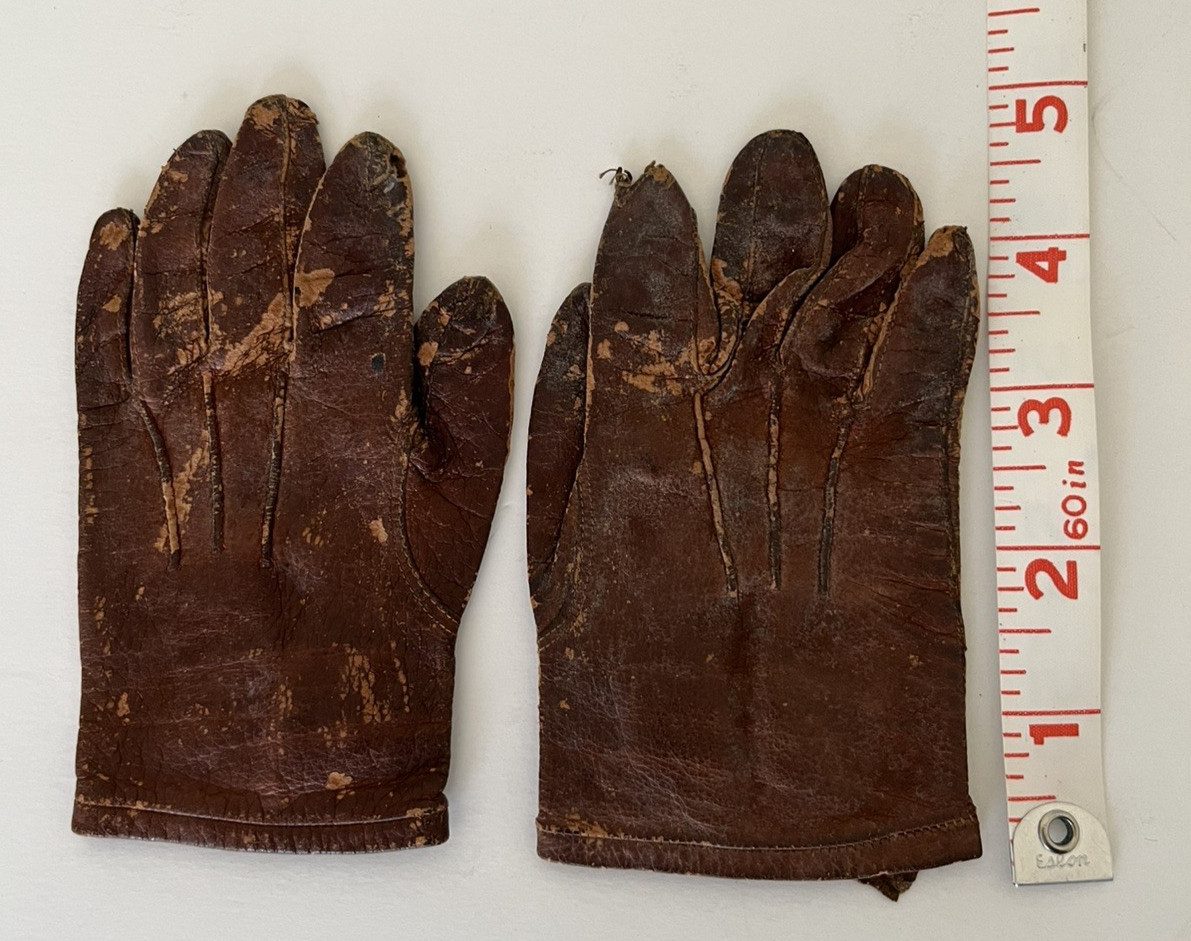 как выглядит Old Antique Child s Kid Toddler Leather Gloves w/ Snap, Wrist Length фото