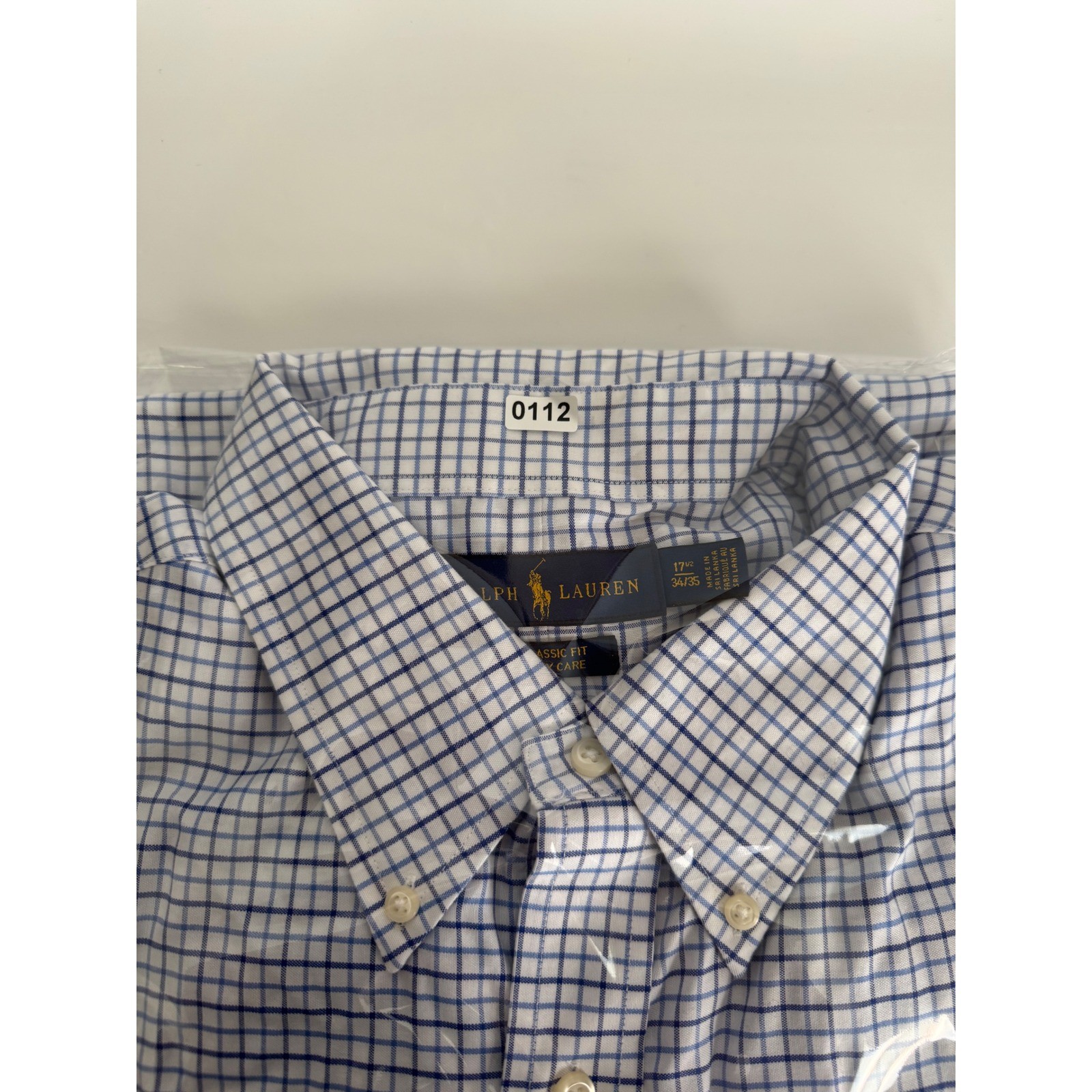 как выглядит Ralph Lauren Button Down Shirt Classic Fit Easy Care 17.5 34/35 Blue White EUC фото