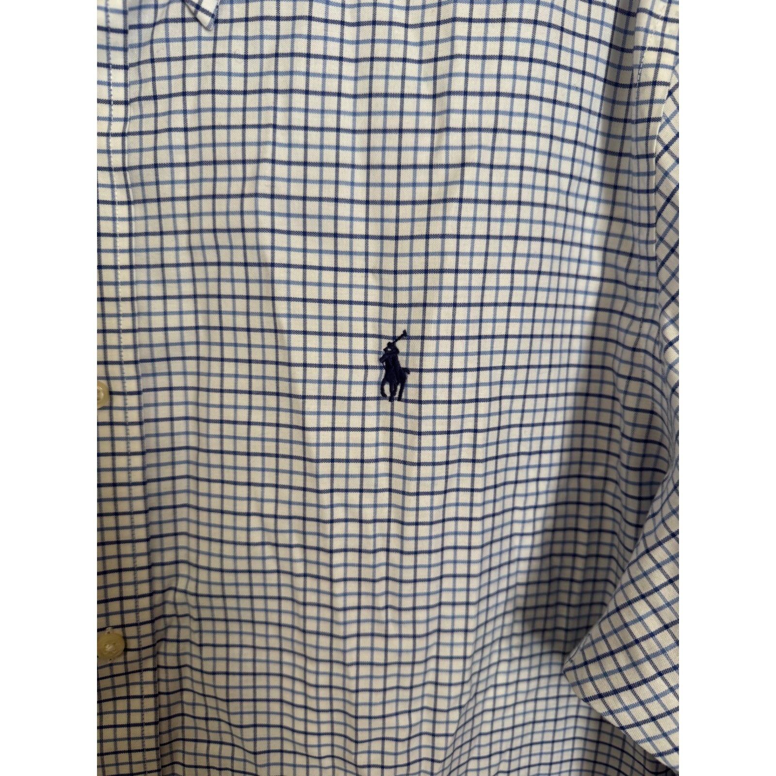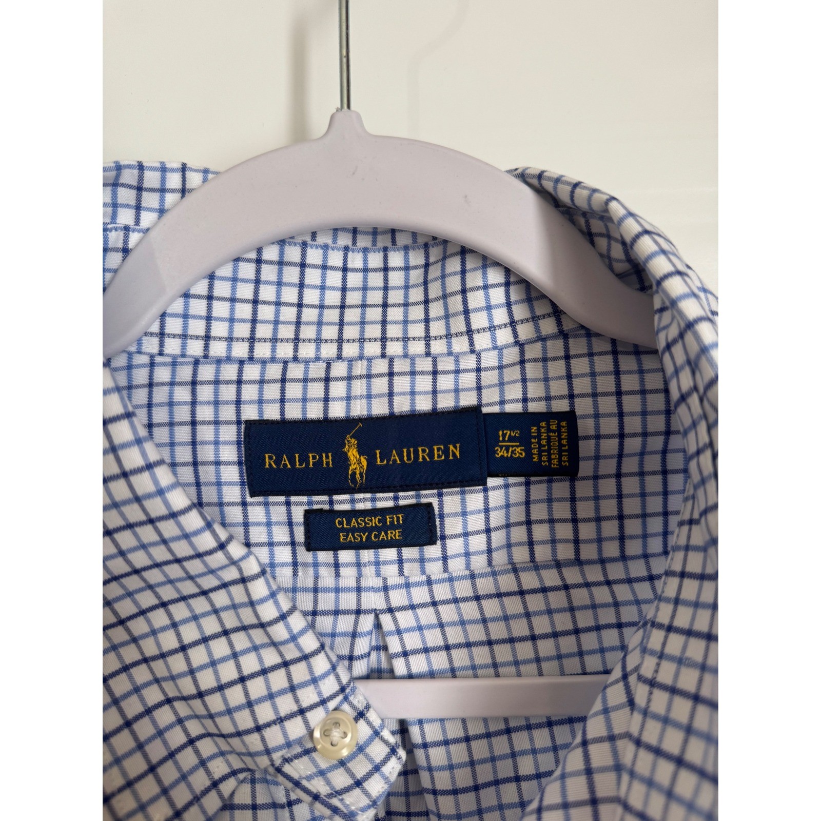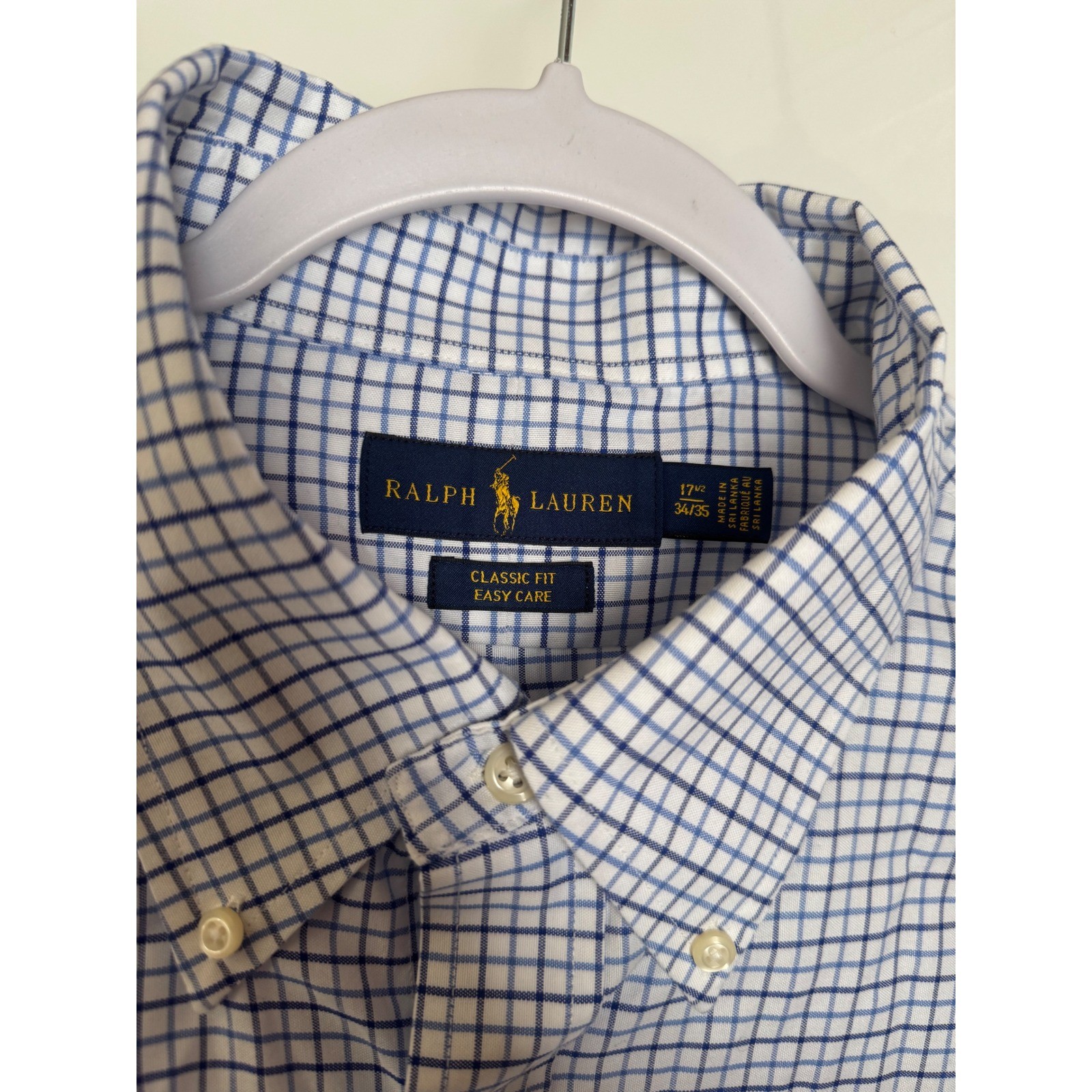 Ralph Lauren Button Down Shirt Classic Fit Easy Care 17.5 34/35 Blue White EUC