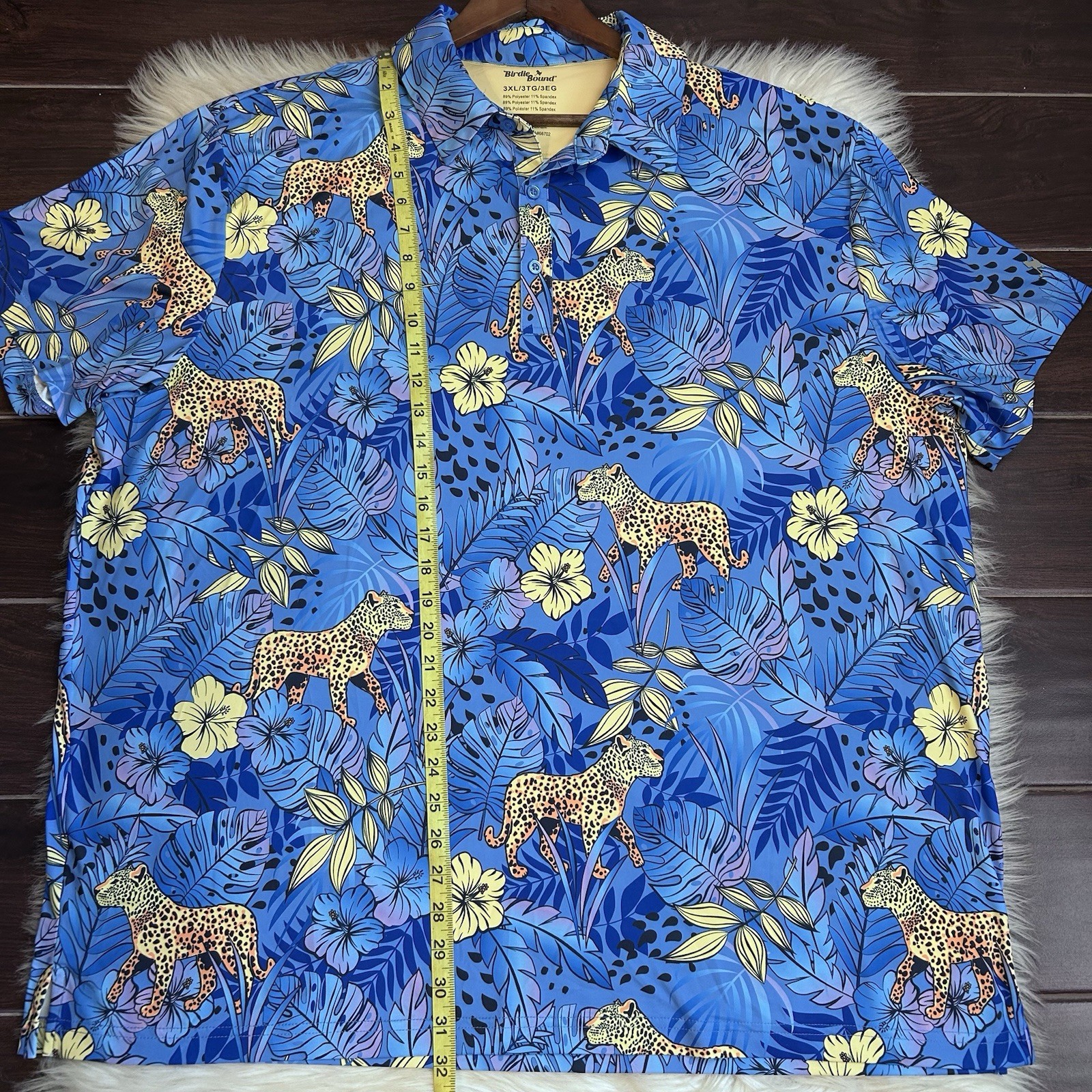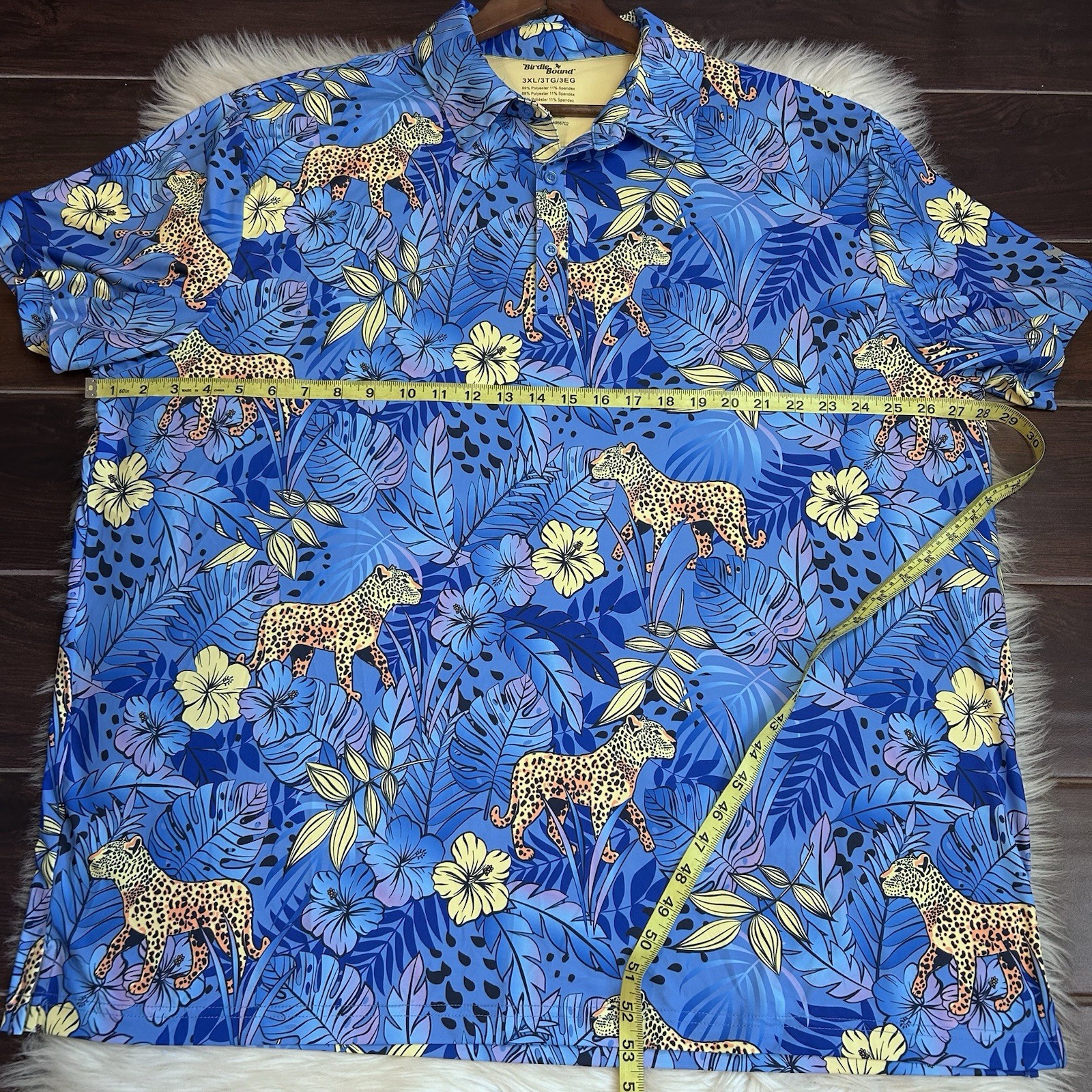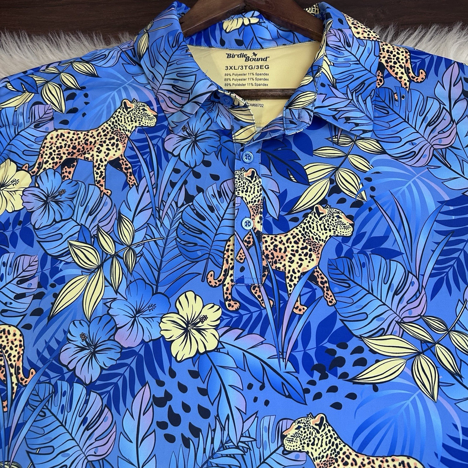 как выглядит Birdie Bound Performance Polo Shirt Mens 3XL Blue Tropical Leopard Golf Preppy фото