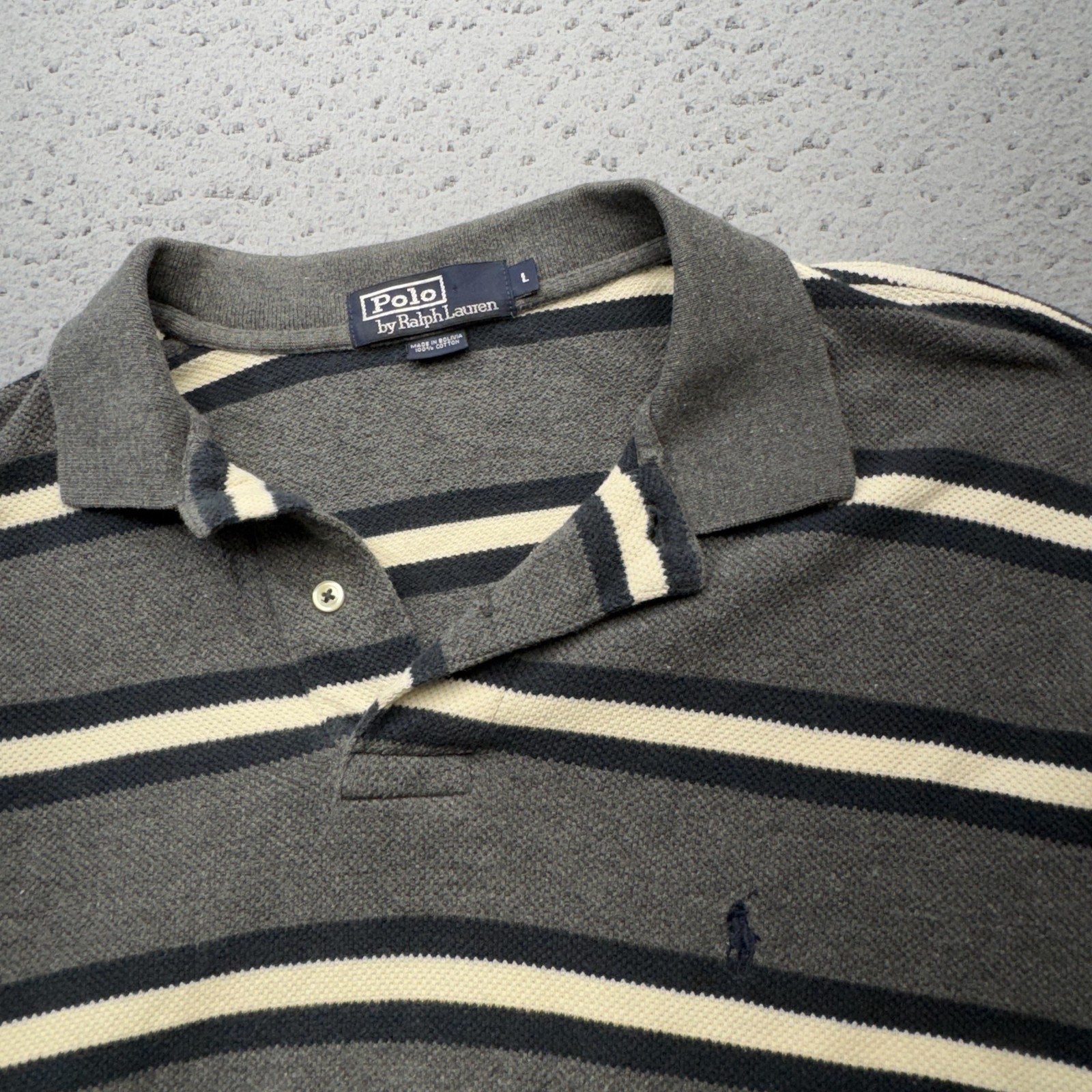 Polo Ralph Lauren Polo Shirt Mens Large Gray Striped Knit Long Sleeve Preppy
