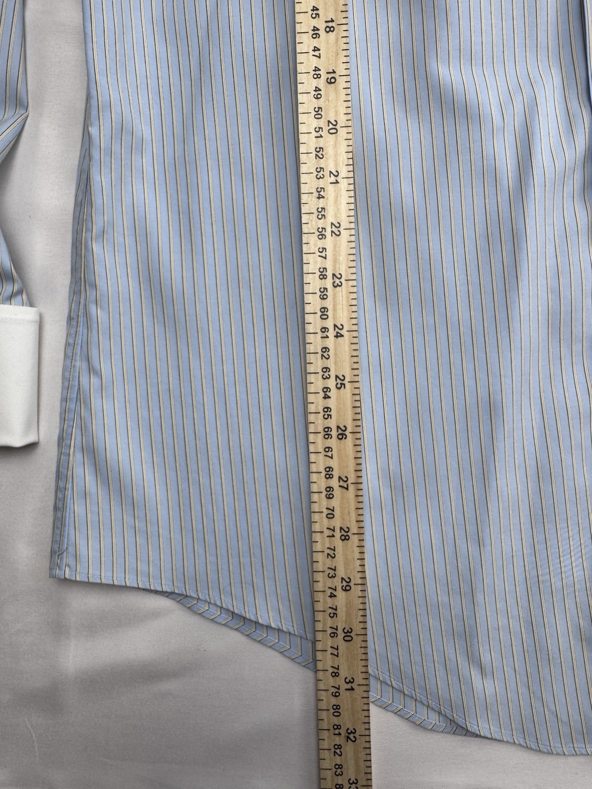 как выглядит Brooks Brothers 16-34 Slim Fit Blue Stripe Dress Shirt French Cuff Non Iron фото
