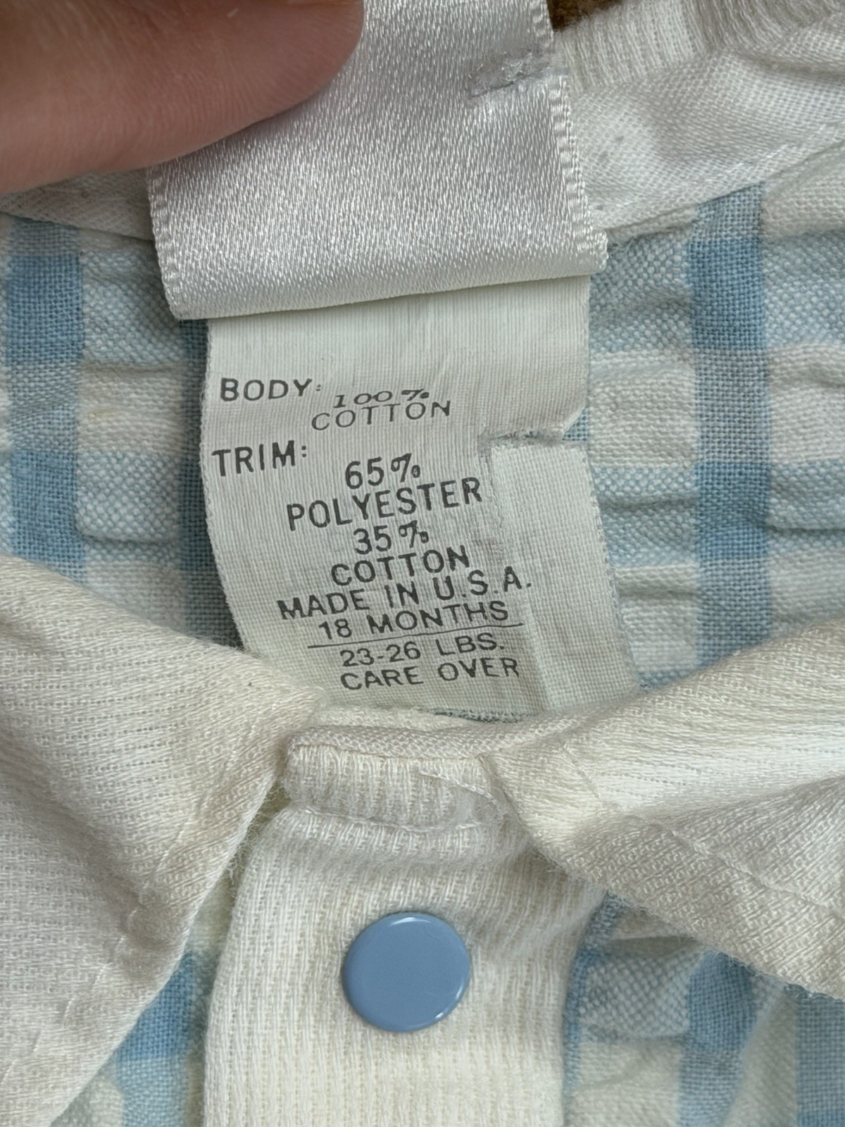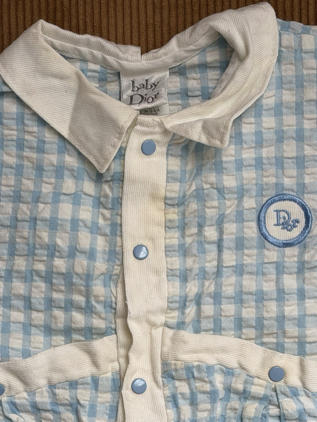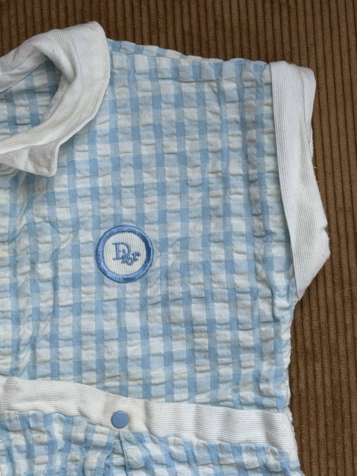 Vintage Baby Dior One Piece Romper Blue Gingham Sz 18 M