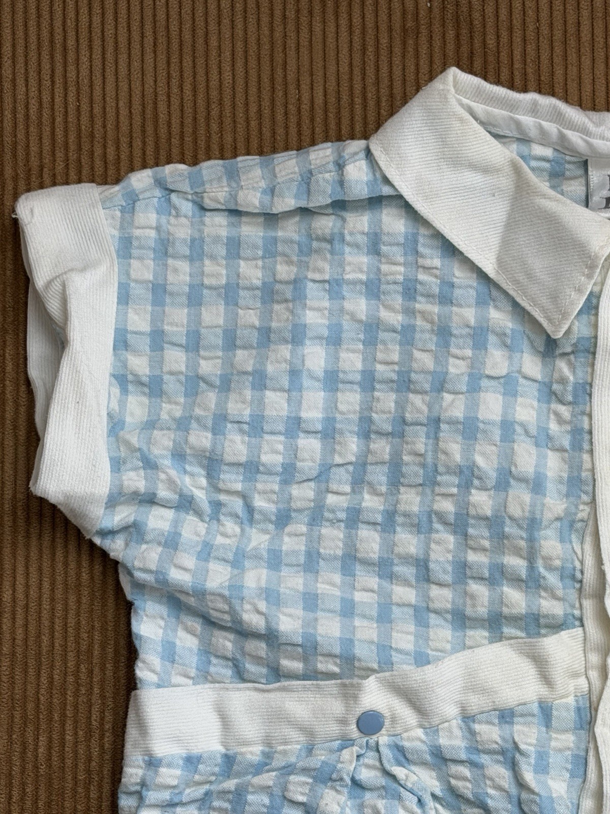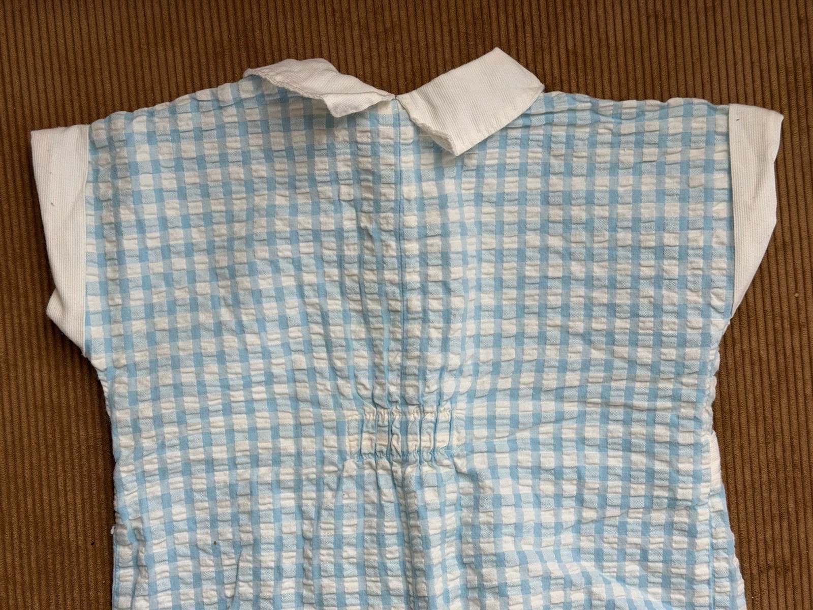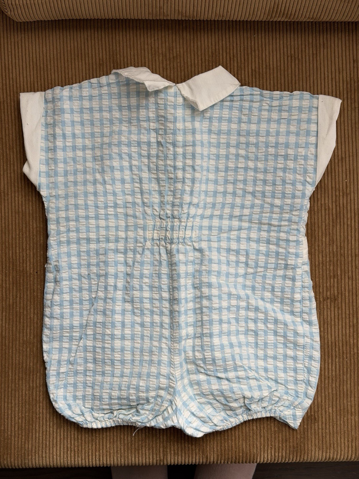 Vintage Baby Dior One Piece Romper Blue Gingham Sz 18 M