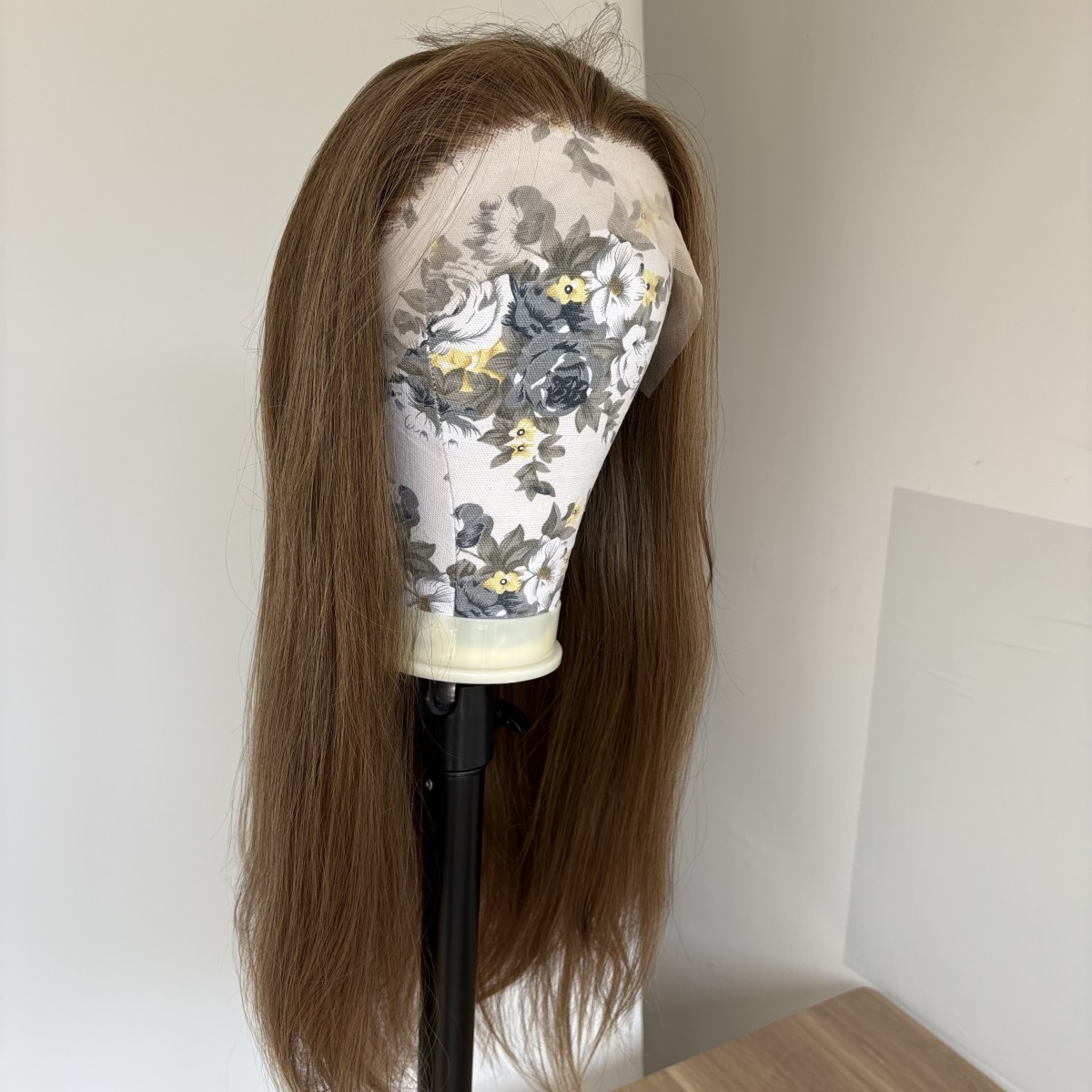 Glue Less Lace Front Wig Synthetic Hair Mixed Brown Pre Plucked Long Straight