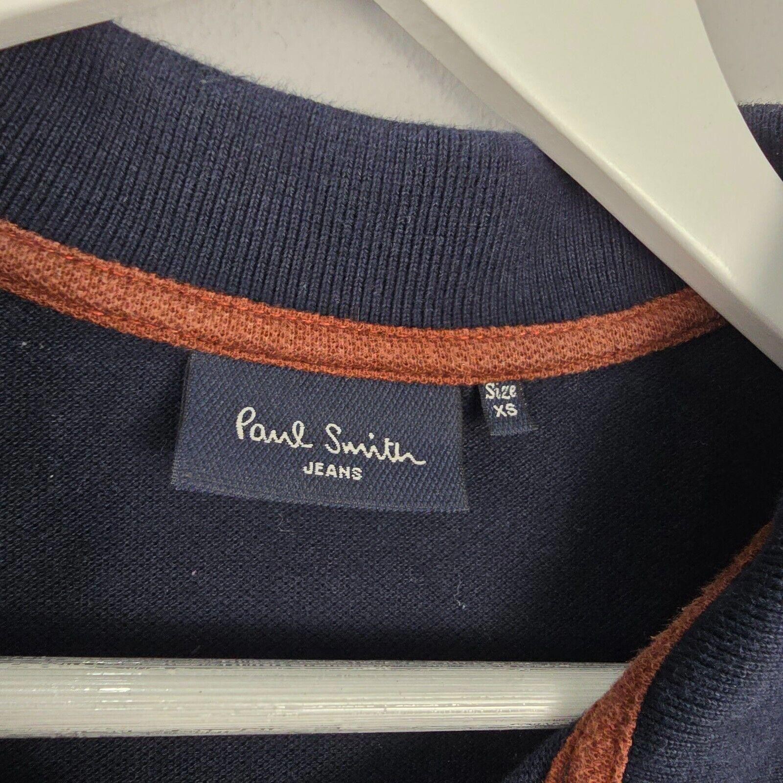 Paul Smith Polo Shirt Mens Extra Small Blue Long Sleeve Cotton Slim Rainbow