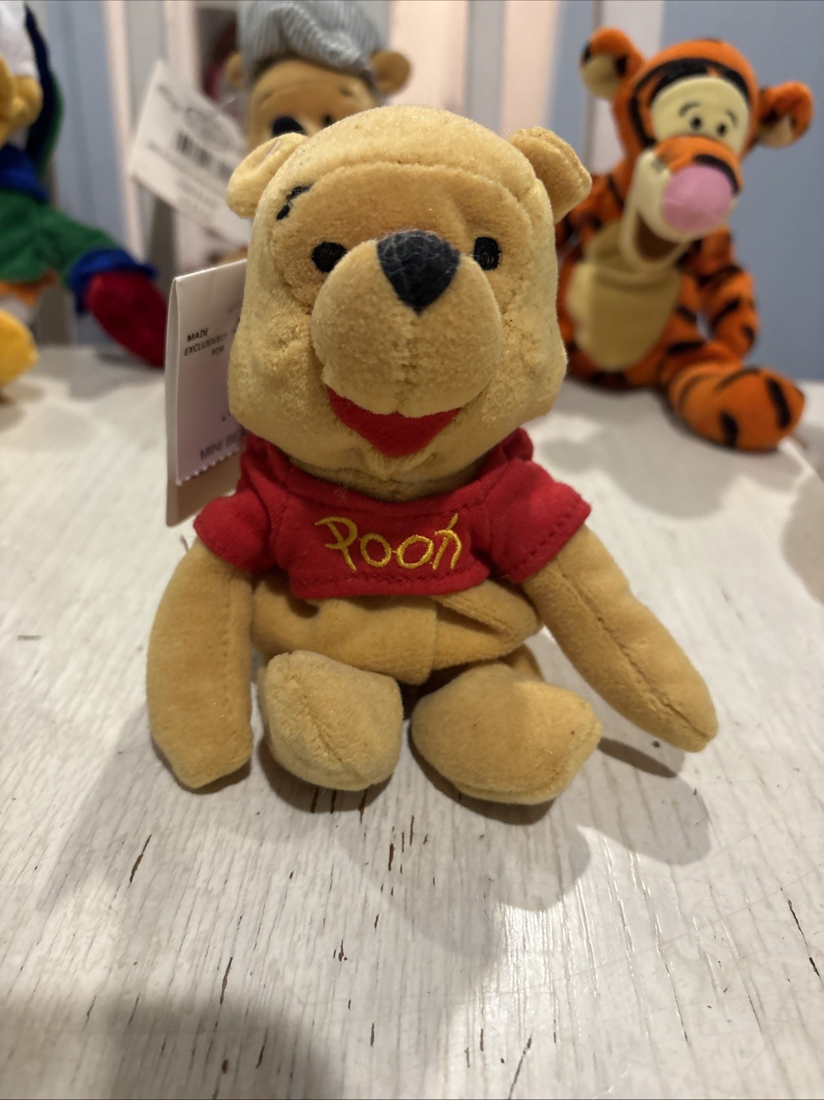 • Lot of 7 Disney Mini Bean bags plush Winnie The Pooh, Tigger, Donald 5 Poohs